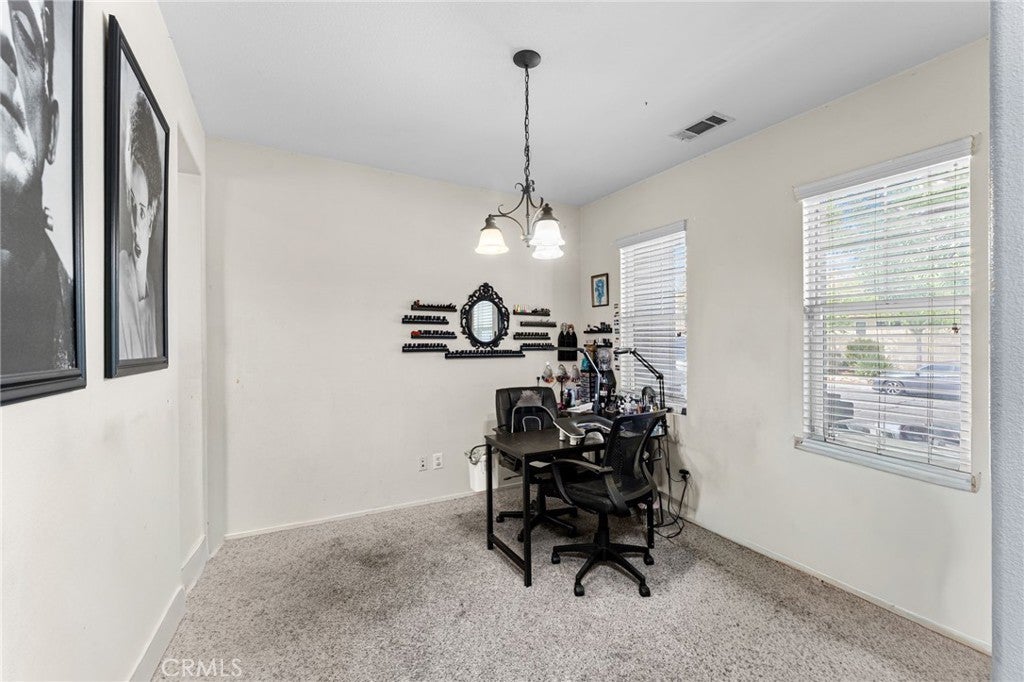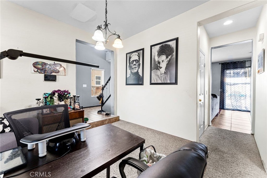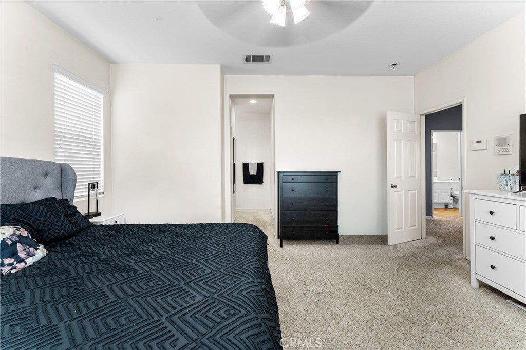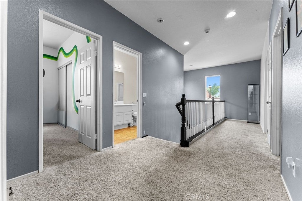Welcome to Moreno Valley with great curb appeal! This spacious and versatile home offers 4 bedrooms and 2.5 bathrooms! The home is ideal for growing households, guests, or a home office setup. From the curb, the home stands out with its attractive stone siding, a complementary paint scheme, and decorative shutters along the windows. a 2-car garage and wide driveway provide for ample parking. Step inside the home and you’re welcomed by a tile entry! A downstairs office area can potentially function as an additional sleeping area, if needed. Step into the living room which features a fireplace and opens seamlessly to the kitchen, creating a comfortable and connected space for everyday living and entertaining. The kitchen comes equipped with a stainless steel 5-burner stove, microwave hood/vent, dishwasher, and a refrigerator. White tile countertops, shaker-style cabinets, and a pantry for extra storage. A dedicated laundry room with built-in shelving. A convenient downstairs bathroom adds to the home’s functionality. Upstairs, you’ll find four bedrooms, including the converted loft, plus a landing area with built-in shelving. The upstairs primary bedrooms offer ample natural light. In addition, dual closets, and a private bathroom complete with double vanity sinks, a shower/tub combination, and a separate water closet for additional privacy. The upstairs hall bathroom also features a double vanity and full shower/tub combo, making it well-suited for busy households. Step outside through the sliding glass door to a low-maintenance backyard featuring a large concrete area with brick accents and a generously sized covered patio, perfect for relaxing or hosting. With central heating and air conditioning and a flexible, comfortable layout, this home offers buyers a strong opportunity for space, function, and value in a well-established Moreno Valley neighborhood.