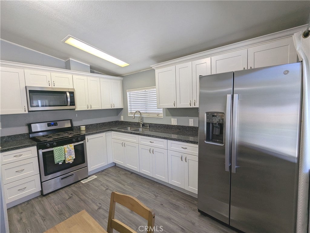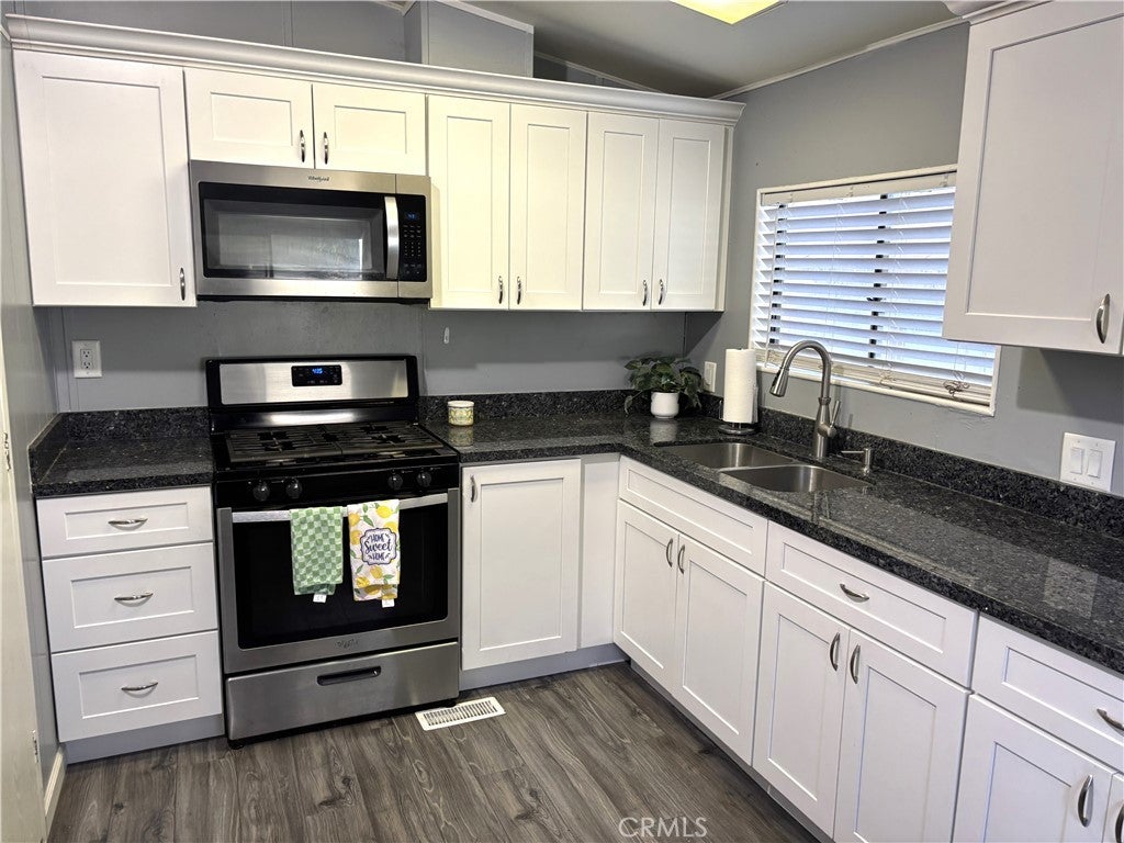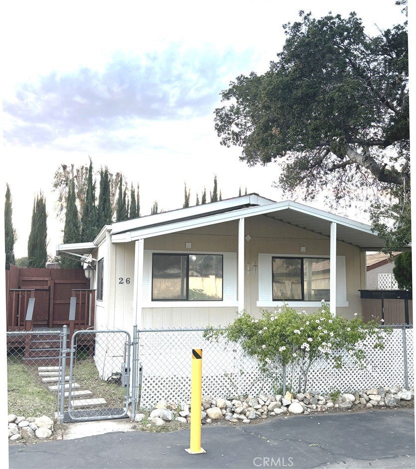 OUTSTANDING LOCATION for this Mobile Home Park ! Gated and surrounded by oak trees! Walk to Masters University. ADORABLE 2+1 with open floorplan! REMODELED Kitchen with granite countertops and stainless steel appliances! Beautiful laminate flooring and ceiling fans installed! Bathroom tub and shower replaced in January 2025. Roof replaced in May 2025. AC replaced in July 2022. Furnace replaced in November 2023. Spa included! Home comes with two designated parking spaces. Best VALUE in SCV!