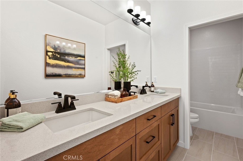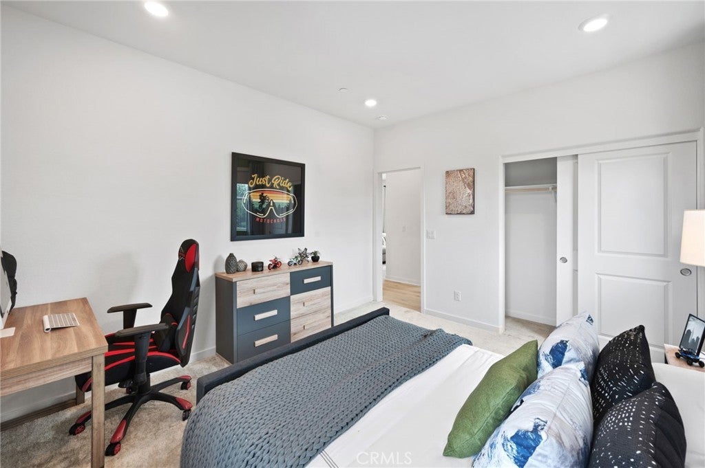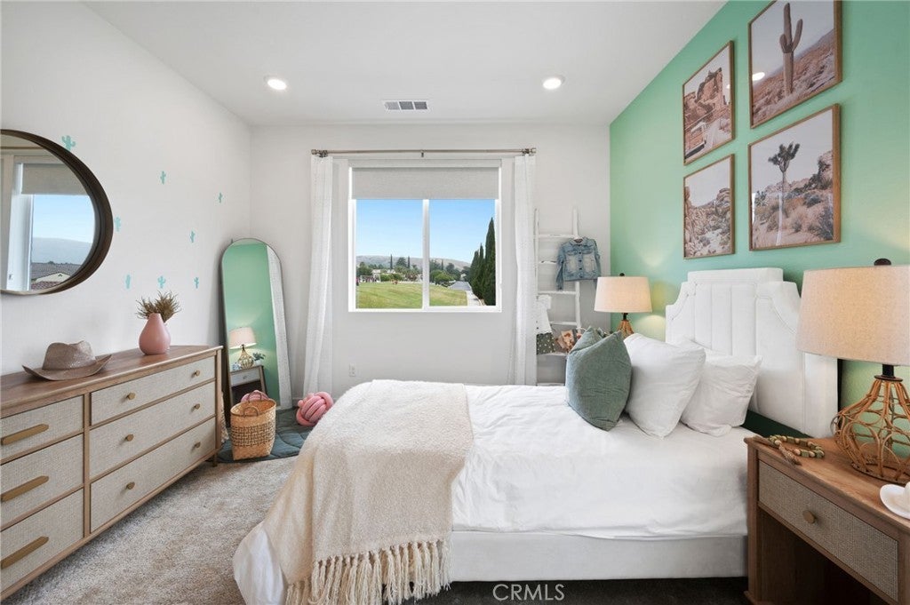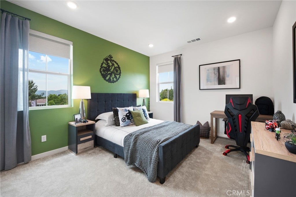 Experience the allure of this beautiful two story home, offering an inviting 2,556 sqft of open living space. With 4 bedrooms, 3 bathrooms, Loft, Ground floor bedroom, 3-car garage, located on a large ADU compatible & graded for RV parking, this residence perfectly blends comfort and functionality. Throughout this home, you'll find the distinctive features of CrestWood Communities. Marvel at the soaring 9-foot ceilings that create a sense of spaciousness and grandeur in every room. The kitchen shines with easy-care Quartz countertops adorned with a stylish 6-inch backsplash, providing both elegance and practicality. Embrace the latest advancements in energy-saving features, including a tankless water heater and LowE windows. These additions ensure an environmentally friendly and efficient home environment, helping you reduce your carbon footprint.