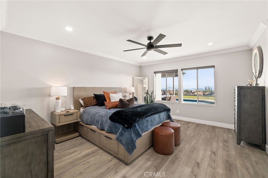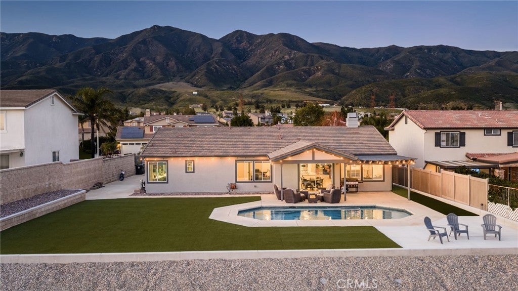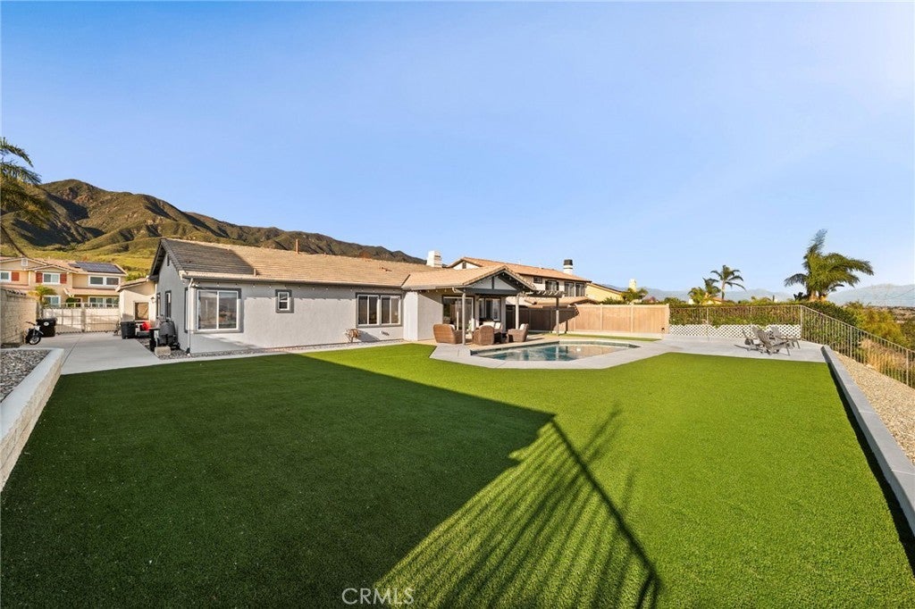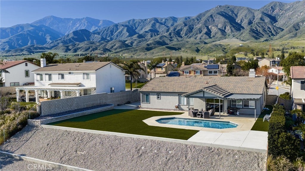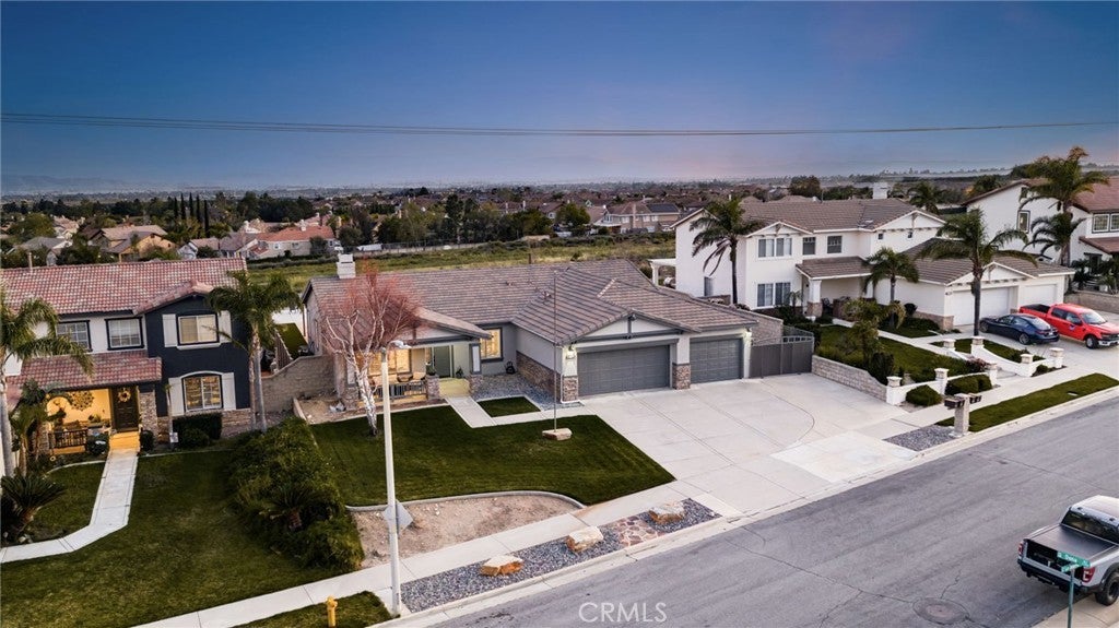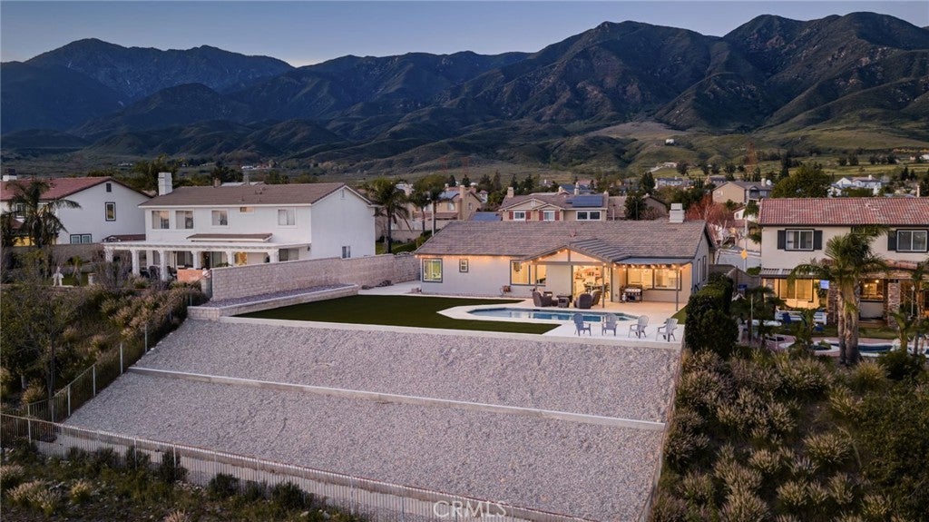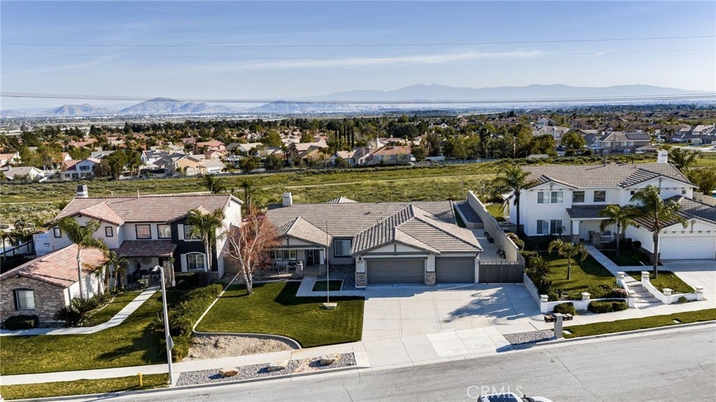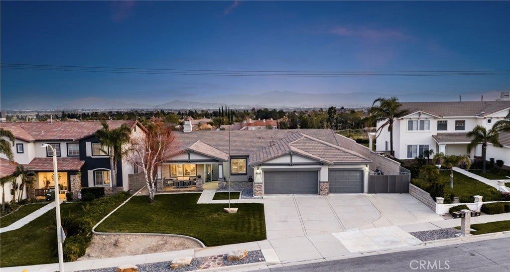 Welcome home to 13991 San Segundo Drive, nestled in the highly desirable Sheridan Estates community of Rancho Cucamonga! This beautifully appointed single-story residence offers sweeping mountain and sparkling city light views, creating a peaceful and picturesque setting from nearly every vantage point. From the moment you arrive, the stunning mountain backdrop sets the tone for what awaits inside. Step into a thoughtfully designed home featuring four spacious bedrooms and two and a half bathrooms, enhanced by elegant details such as plantation shutters and crown molding throughout. The expansive primary suite serves as a private retreat, complete with a generous layout, dual sinks, a separate soaking tub and shower, a vanity area, and two walk-in closets. The open-concept floor plan is both functional and inviting, highlighted by wide hallways and quality finishes that create a seamless flow from room to room. Multiple living spaces including a formal living room, dining room, and a cozy family room with a fireplace which connects effortlessly to the heart of the home. The chef’s kitchen outfitted with premium Viking Professional appliances, a center island, breakfast bar, and a dedicated dining area. Sliding glass doors lead you to a private backyard oasis, where a covered patio, sparkling pool, and breathtaking views provide the perfect backdrop for entertaining or unwinding. Additional features include a three-car attached garage with gated RV parking, concrete retaining wall, a welcoming front patio, a well-equipped laundry room with built-ins and a sink, and an abundance of natural light throughout. Ideally located near shopping, dining, parks, and convenient access to the 210 and 15 freeways, this home offers the perfect balance of comfort, style, and convenience. This is your opportunity to own a truly exceptional home in one of Rancho Cucamonga’s most sought-after neighborhoods.