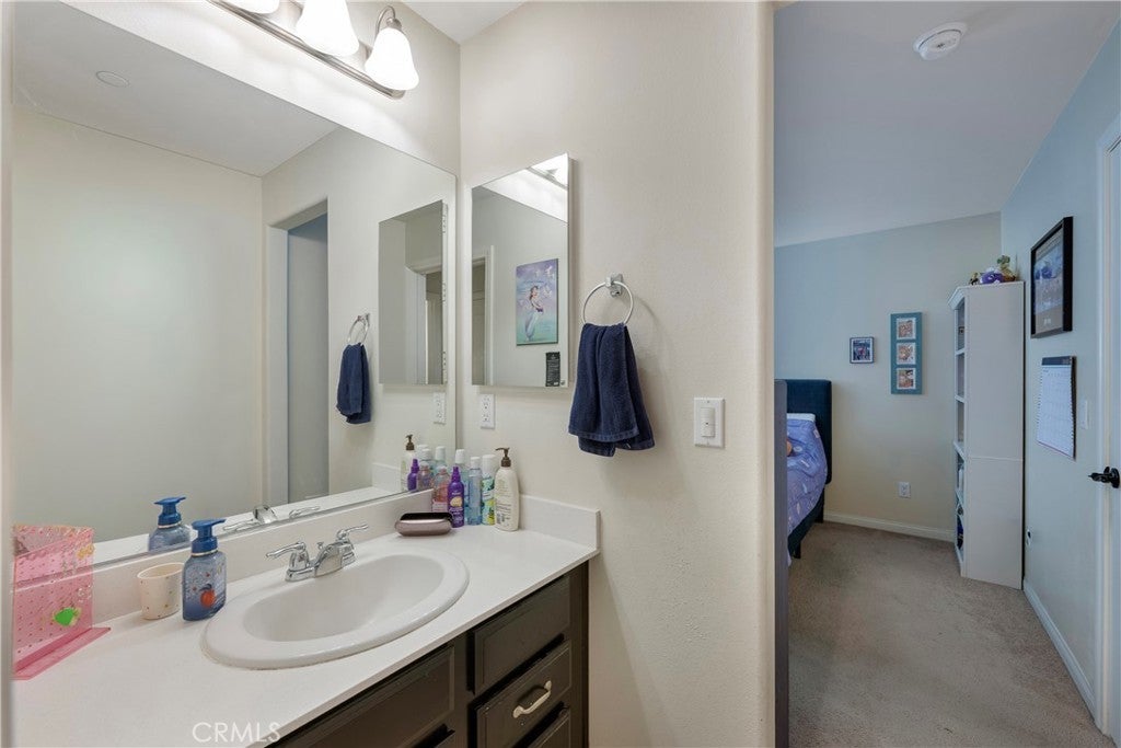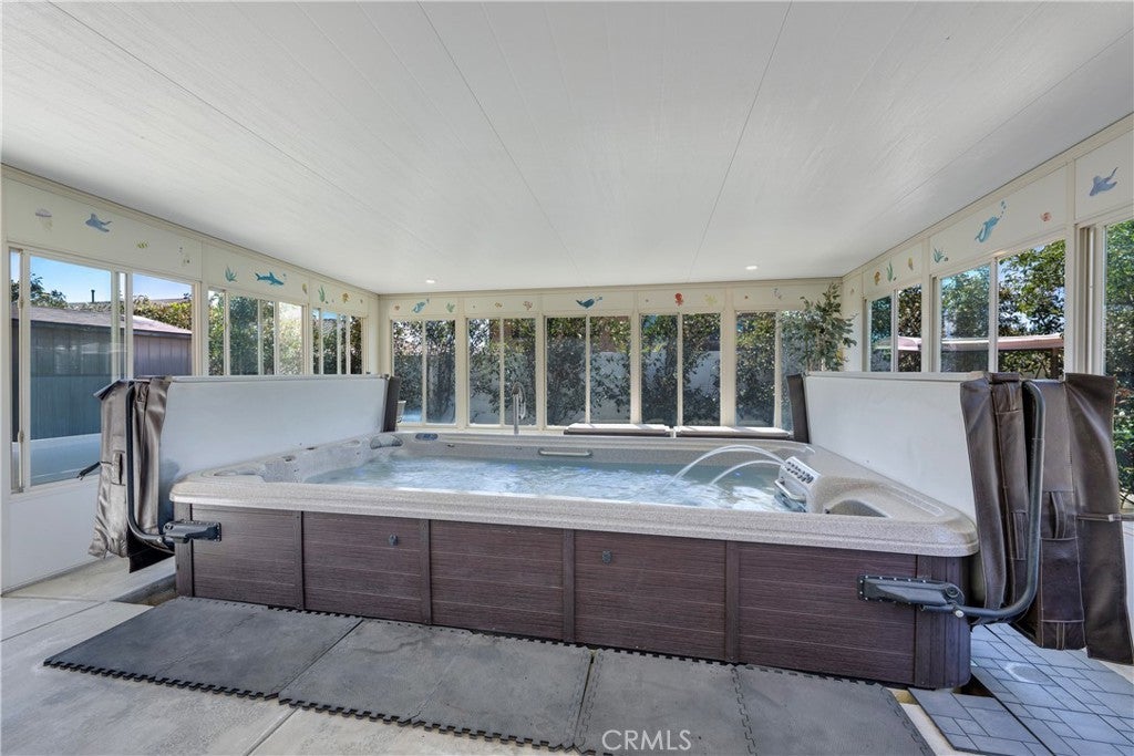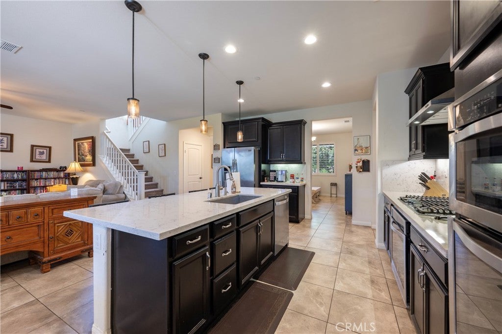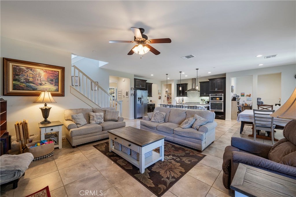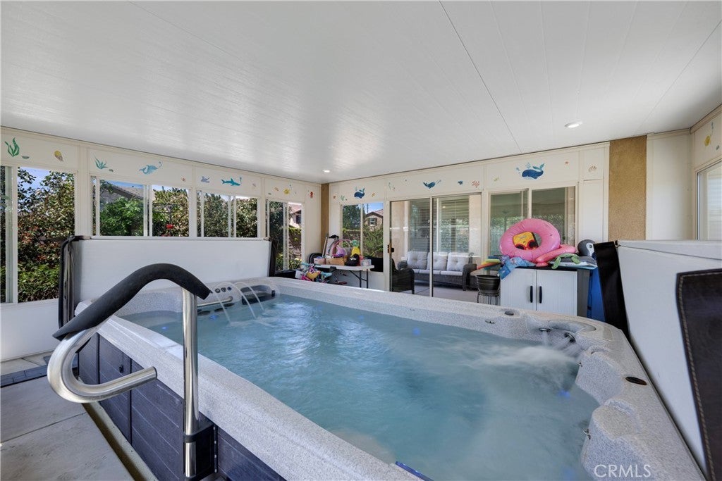 Welcome to this spacious 6 bedroom, 5 bathroom home located in highly desirable community of Serrano Ranch in Jurupa Valley. • Two bedrooms conveniently located downstairs, including one with a private en-suite • Full bathroom downstairs—perfect for guests • Open loft area upstairs • Tile flooring throughout the first floor; two bedrooms feature laminate flooring • Modern kitchen with quartz countertops, large island, full backsplash, and dual ovens • Dual laundry areas: upstairs laundry room plus garage hookups with utility sink • Walk-in pantry for ample storage • Energy-efficient tankless water heater • Aquasana whole-house water filtration system with two reverse osmosis taps • Enclosed pool room featuring a 14-foot swim spa • Beautifully landscaped backyard with extended patio and storage shed • Owned solar panel system • Neighborhood park within close proximity