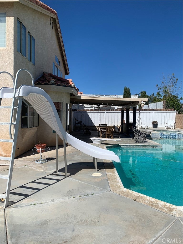 Home is in a great neighborhood excellent location good Sqft 2327 interior has new paint carpet, new flooring walk into large open living room with high vaulted ceilings walk into open kitchen with island to family room and fireplace view of backyard with spa and pool to enjoy with family and friends room for pets or toys low maintenance, Inside has four bedrooms three full bath, one bedroom or office one full bath down stairs three bedrooms new carpet two full bath upstairs master bedroom walk in closet separate bath and shower plenty of windows for natural sun light. Drive way has RV parking
