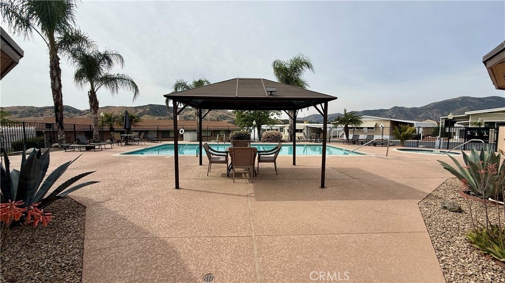 Priced to sell in the highly desirable El Dorado Palms senior community, this spacious double-wide manufactured home features 2 bedrooms, 2 bathrooms, and a large outdoor patio ideal for outdoor living and entertaining. Recent updates include a newer roof, fresh paint throughout, and a newer range and hood. With great potential and room to make it your own, this home is an excellent opportunity for a buyer seeking value in a super clean, well-maintained community. Sold as-is, where-is. Enjoy resort-style amenities including a pool, spa/hot tub, clubhouse, billiard room, and recreation room.