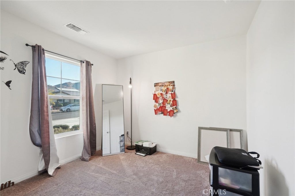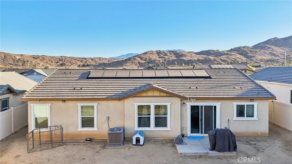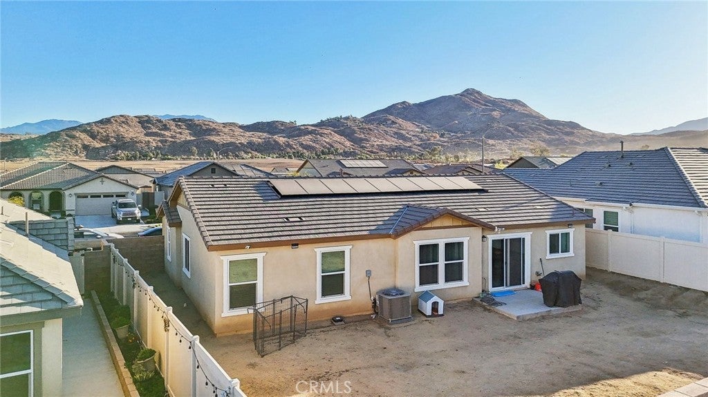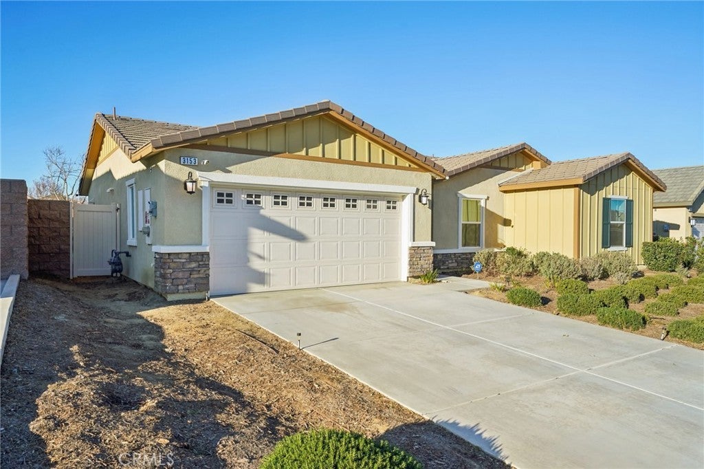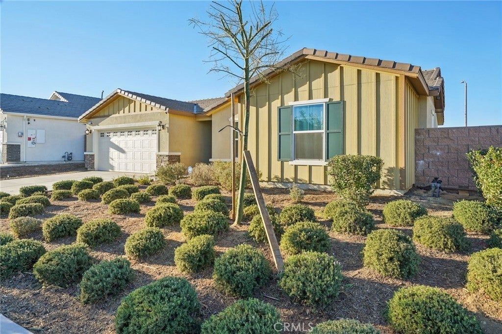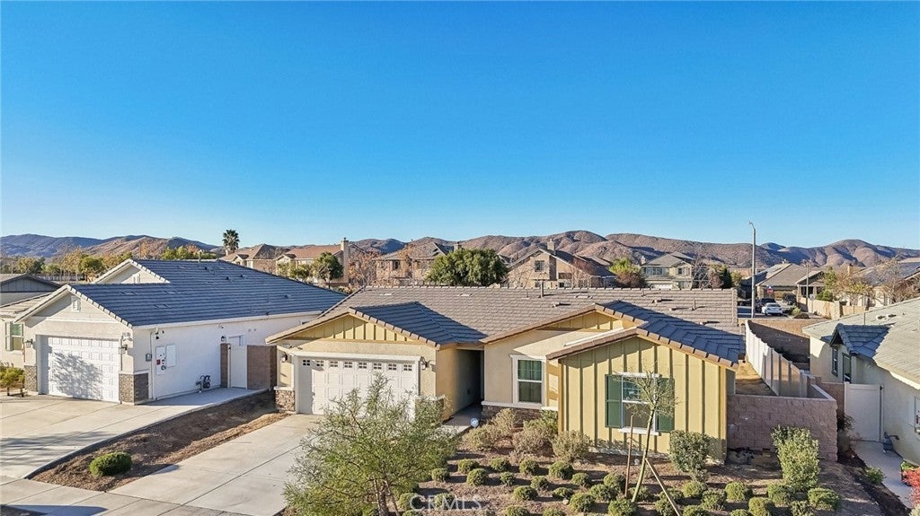 Experience the comfortable, laid-back living you want in this delightful 3-bedroom, 2-bath single-story home in a beautiful Hemet neighborhood! Past the foyer, continue to the open-concept main gathering areas filled with natural light, illuminating a crisp white palette, textured tiles, and plush carpeting underfoot. Glass sliders off the dining alcove beckon you to enjoy scenic alfresco celebrations. Steps away, the bright kitchen makes cooking a breeze with its stainless steel appliances, abundant cabinetry, and granite countertops that extend to the eat-at island. Three well-sized private quarters accommodate you and overnight guests, two of which share a tiled bath. Outshining the others, the primary retreat features a large walk-in closet and a refreshing ensuite with a separate shower and soaking tub. Outside, a versatile fenced-in yard presents plenty of potential for fun and leisure activities. Additionally, there’s a laundry room, an attached 2-car garage, and solar panels for energy efficiency. Notable perks include access to incredible community amenities like the pool, recreational areas, and picnic parks, full gym in the club house. Come for a tour while this great opportunity is still available!