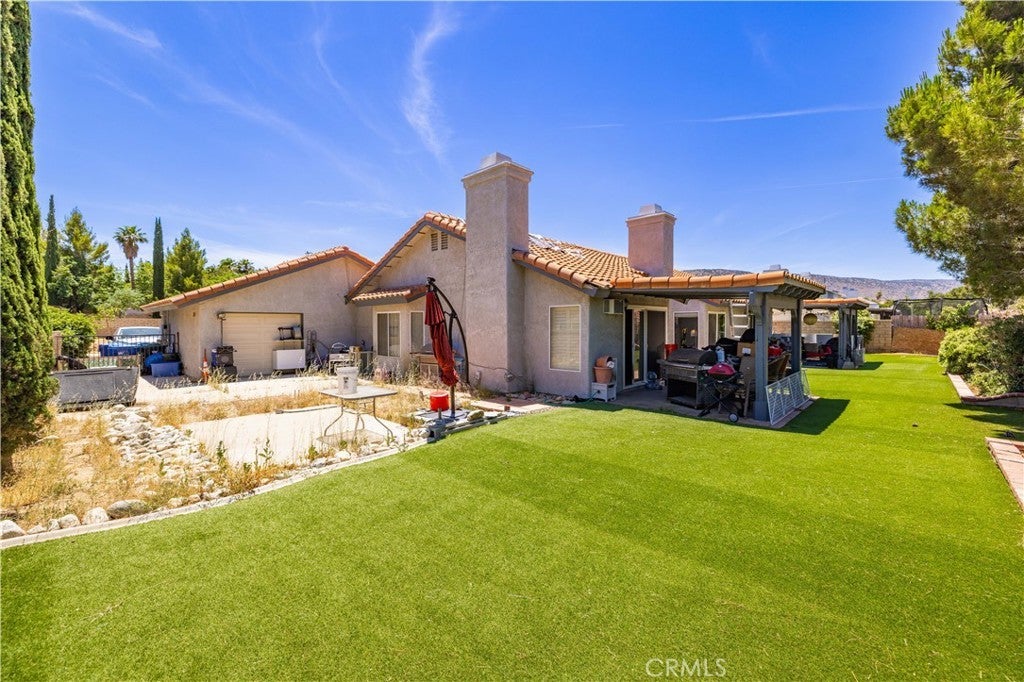 Energy-Efficient Beauty in West Palmdale! Welcome to this stunning single-story home in the desirable West Palmdale neighborhood, where comfort and style meet. Step outside to enjoy new drought-tolerant landscaping in both the front and back yards, paired with fresh exterior paint for a clean, modern curb appeal. A spacious driveway offers RV parking, and a rare 3-car drive-through garage opens directly to the backyard, ideal for storing trailers, boats, or creating your dream workshop. Inside, the home features an inviting open-concept floor plan with FOUR spacious bedrooms and THREE FULL bathrooms. The updated kitchen boasts granite countertops, soft-close cabinets with pull-out drawers, a lazy Susan, recessed lighting, and a large walk-in pantry. Vaulted ceilings and oversized windows flood the home with natural light, creating an airy and expansive feel throughout. Whether you’re accommodating a growing family, storing off-road toys, or simply looking for extra space to live and thrive, this home checks all the boxes. Don’t miss your chance to own this beautifully maintained, move-in-ready home with modern upgrades!