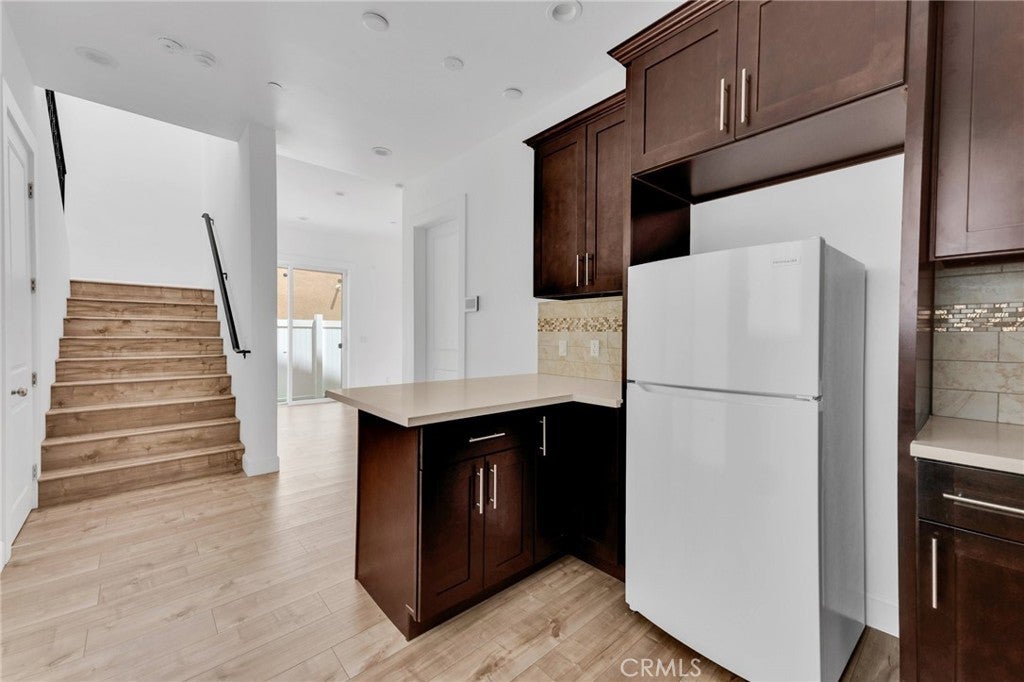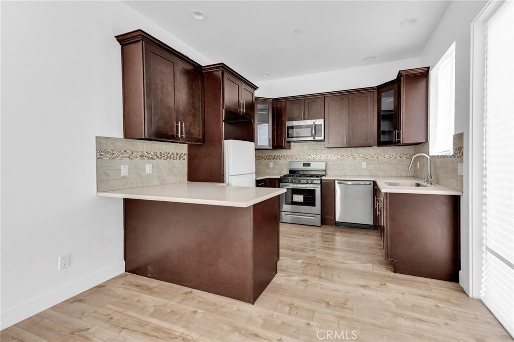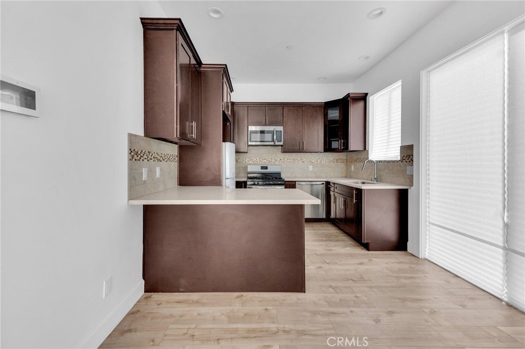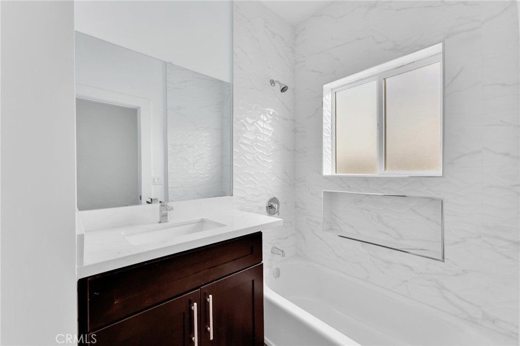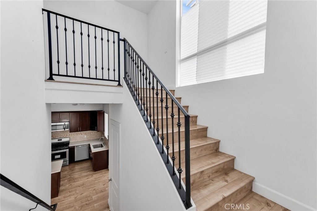 Built in 2022, this Gorgeous home welcomes you with custom flooring and an open-concept layout ideal for both everyday living and entertaining. The sleek kitchen features modern amenities, stainless appliances and flows seamlessly to a sunny patio through sliding glass doors—perfect for indoor-outdoor gatherings. Upstairs, all bedrooms boast vaulted ceilings, while the primary suite includes double sinks and a spa-like bathroom. Additional highlights include abundant natural light, recessed lighting, a tankless water heater, indoor laundry, and an attached 2-car garage. Conveniently located near shops, restaurants, and major freeways, this home combines comfort, style, and unbeatable accessibility.