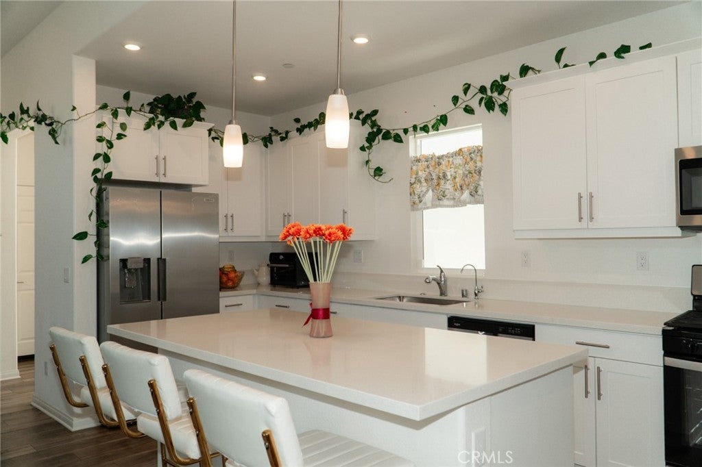 Back on the market! Welcome to this beautifully maintained single story 3 bed, 2 bath PUD home located in the gated community of The Depot in Rialto. This energy efficient home features an open floor plan with abundant natural light, a spacious kitchen with quartz countertops and stainless steal appliances, and a primary suite with walk in closet and dual sink vanity. Additional highlights include a laundry room located just off the bedrooms within reach, solar panels and a tankless water heater, enjoy lower utility bills and eco-conscious living. HOA amenities including a dog park, playground and bbq area. Conveniently located near schools, shopping, dining, and major freeways, with easy access to the Metrolink station. Perfect for first time buyers, families, or those seeking low-maintenance living in a secure and welcoming community.