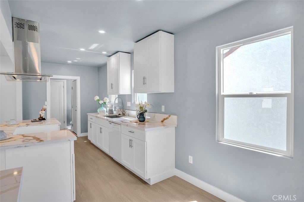 Seller Very Motivated! Discover this exquisite cottage-style single family residence, an enchanting haven featuring three beautifully appointed bedrooms and two elegantly remodeled bathrooms, this home has been thoughtfully designed to embrace modern living with an open-concept layout that seamlessly integrates the open space for Living Dining and Kitchen areas. Stop inside to find luxurious quartz countertops that grace the kitchen, complemented by stylish laminate flooring that extends throughout the home. The ambiance is further enhanced by recessed lighting, creating a warm and inviting atmosphere. The bathrooms are a masterpiece of design, showcasing double vanities that add a touch of sophistication. Gather round the cozy fireplace in the living room, a perfect spot for relaxation and entertainment. Adjacent to the kitchen, a charming breakfast nook invites you to enjoy your morning coffee in comfort. The property also boasts a one-car garage and a delightful back patio, ideal for all fresco or quiet evenings under the starts. For added convenience, a dedicated laundry room ensures that everyday tasks are handled with ease. This home is not just a residence; it’s a sanctuary ready to welcome you with open arms. Experience the perfect blend of charm and modernity in this stunning abode, where every detail has been curated your enjoyment
