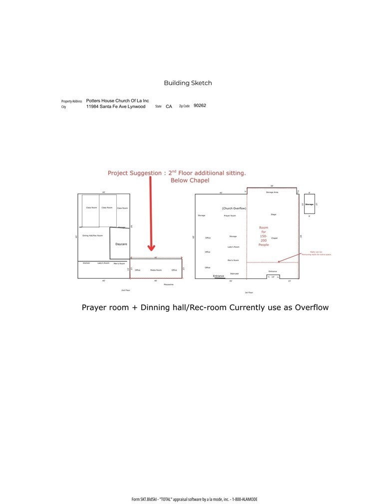 Subject is a church with 7,960 sf and 600 sf of mezzanine area total : 8560 This is a rare opportunity to acquire a well-maintained, fully improved facility located in a desirable R-3 zoned district 2 merge building with parking, surrounded by industrial zoning—offering a broad range of potential uses. Located in the heart of Lynwood with direct access to major freeways including the 105 and 710, this property offers unparalleled connectivity. Strategically positioned near key development zones within both the City of Lynwood and Los Angeles County, the area is experiencing significant revitalization through infrastructure upgrades, affordable housing projects, and community-focused economic initiatives. Enjoy convenient proximity to popular destinations such as Plaza Mexico, just minutes away, with Downtown Los Angeles only 10 miles out and Orange County accessible in under 24 miles. The property also benefits from its closeness to major upcoming attractions like the highly anticipated Lucas Museum of Narrative Art. This is an ideal investment opportunity for businesses or developers seeking location, growth potential, and urban connectivity. for continued institutional use or redevelopment, this flexible property is well-suited for investors, developers, nonprofits, or faith-based organizations.l* Buyer to verify all uses with the City of Lynwood Attached Housing: Townhomes or condominiums Assisted Living: Senior housing or care facilities (subject to jurisdiction) Group Housing: Licensed group or transitional housing Educational Use: Schools, daycares, and preschools (may require CUP) Property Features Main Floor Three private offices Prayer room Small cafeteria Nursery Men’s and women’s restrooms Mezzanine (600 sq ft) Media room Two additional offices Extended Second Floor Area Full commercial-grade kitchen(Been Repair) and dining hall Two classrooms Multiple extra rooms and storage spaces Men’s and women’s restrooms with showers (Been repair-see pic) Recent Upgrades & Amenities Central air and heating system New ductless air conditioning units New dual-pane, energy-efficient windows New carpet and ceramic tile flooring Fresh interior paint Recently replaced roof on both buildings This move-in-ready facility offers functional space with the ability to serve multiple user types and a location strategically positioned near ongoing city revitalization projects.