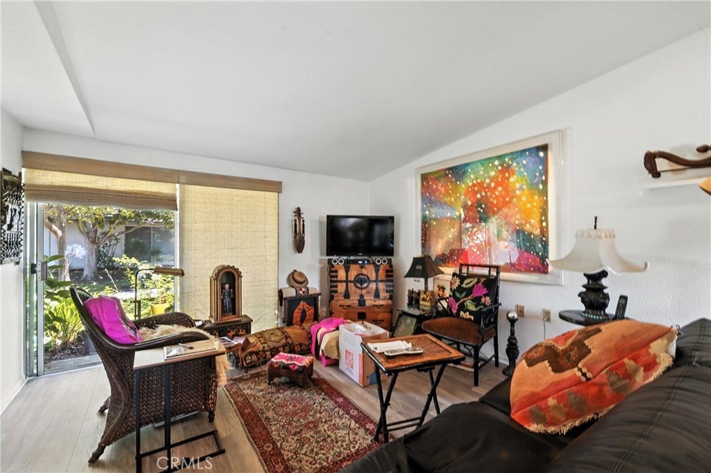 This charming La Corona unit offers approximately 850 square feet of well-designed living space, enhanced by vaulted ceilings and an open floor plan that creates a spacious, airy feel. The bright and inviting living room features abundant natural light from a large window and sliding glass door, which opens to a private rear yard—perfect for enjoying indoor-outdoor living and capturing the afternoon breeze. The spacious eat-in kitchen includes a second sliding glass door that leads to the generously sized, covered front patio—a favorite spot for relaxing or entertaining. HOA-owned and maintained appliances provide added peace of mind. Located in the vibrant 55+ community of Laguna Woods Village, residents enjoy an exceptional array of amenities including: 7 Clubhouses 5 Swimming Pools 2 Fitness Centers Tennis & Pickleball Courts A Library and Book Clubs 2 Professional Golf Courses & a Driving Range Onsite Restaurant Equestrian Center Bridge, Bocce Ball, Woodworking, Photography, Ceramics, Painting & More Over 200 Social Clubs and Organizations All this, just minutes from shopping, dining, medical facilities, entertainment, and easy freeway access. Come see why this could be your perfect next home and start enjoying the Laguna Woods lifestyle today!