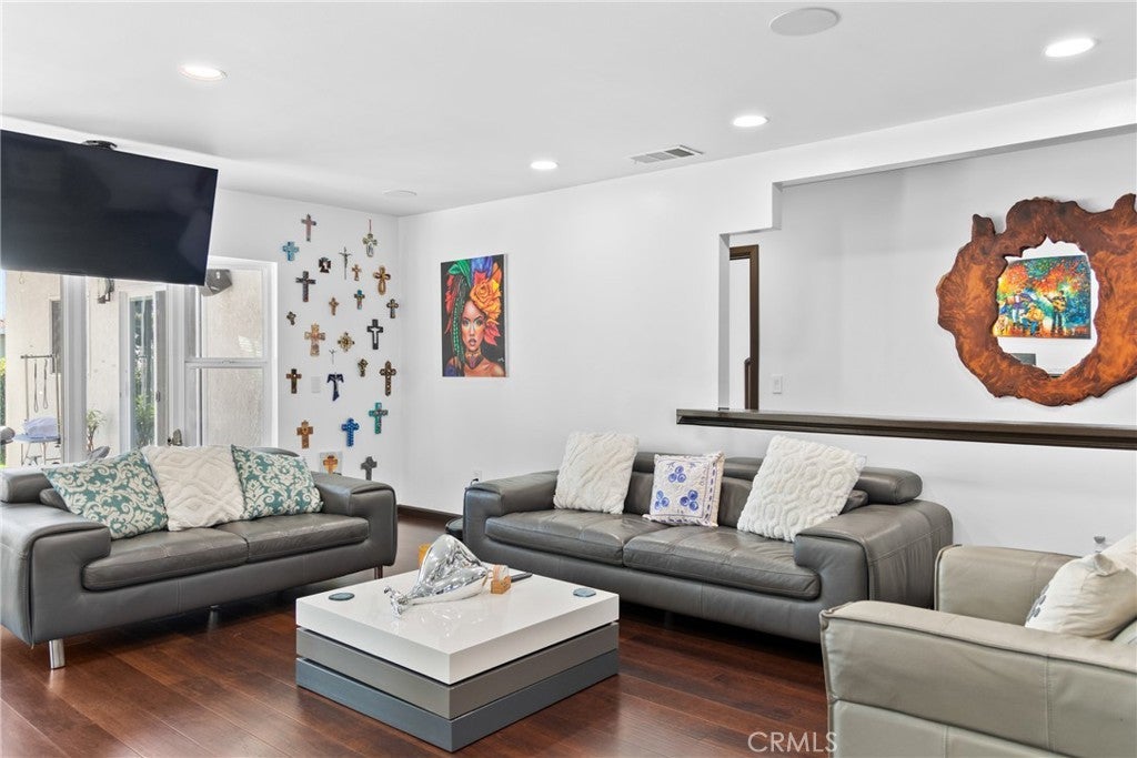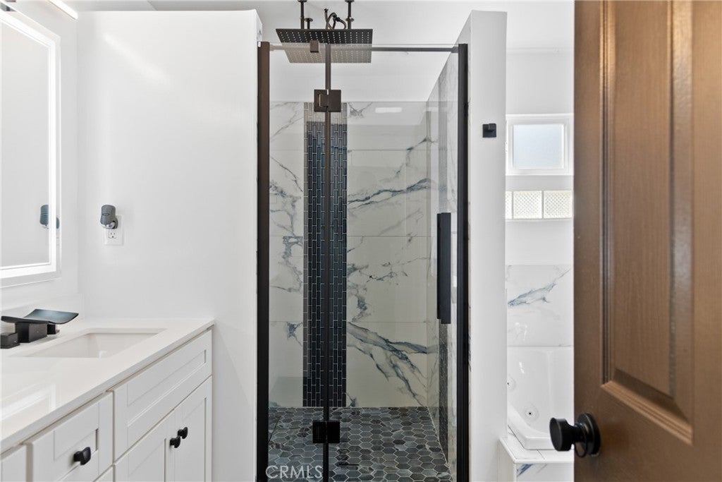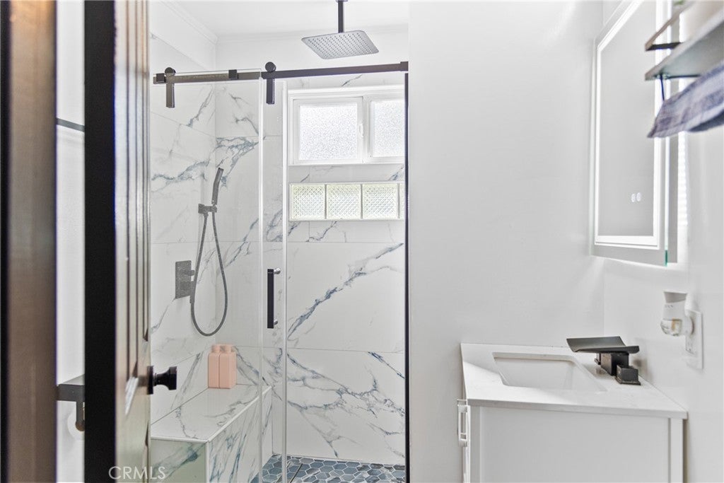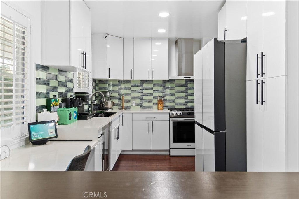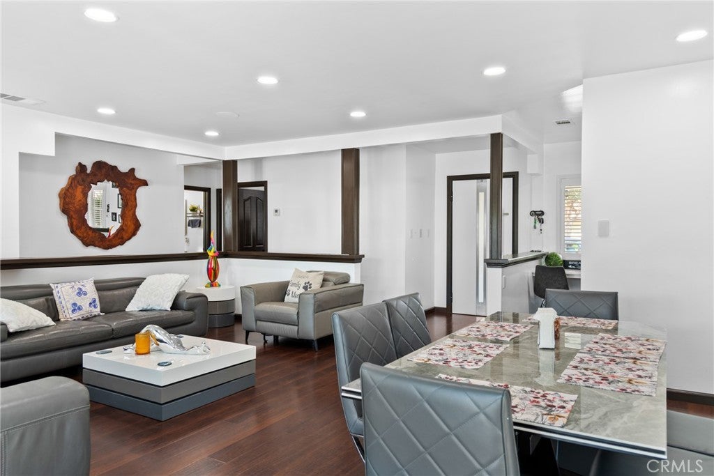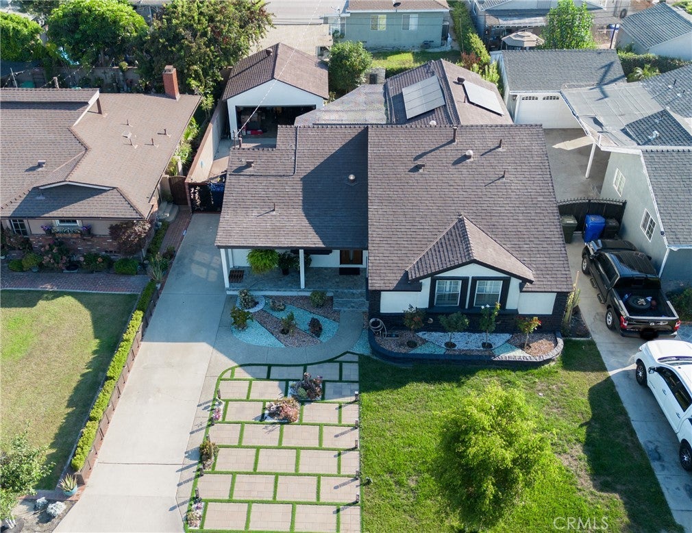 PRICE REDUCTION READY FOR A BEAUTIFUL FAMILY- Beautifully updated contemporary home located in North East Downey. This fully remodeled minimalistic property combines modern design with advanced technology, offering convenient control of home features at the touch of a button. The interior features an open-concept layout with sleek window shutters, new sliding doors, and built-in surround sound in both the main living area and the primary bedroom. The kitchen includes quartz countertops, contemporary cabinetry, and a stylish tile backsplash, designed for both functionality and visual appeal. The primary suite includes an electric fireplace and a thoughtfully designed en suite bathroom with a Jacuzzi tub, rainfall showerheads, dual sinks, and smart toilets with warming and control features. Additional enhancements include smart home integration, a new air conditioning unit, energy-efficient fixtures, a water filtration system, and a tankless water heater. The exterior has been freshly painted and features a solar panel system to support energy efficiency. The backyard offers a built-in fountain and a modern deck, creating a versatile space suitable for relaxation or entertaining. Professionally landscaped with an irrigation system for easy maintenance. This home offers a blend of updated features and thoughtful design in a well-established area of Downey.
