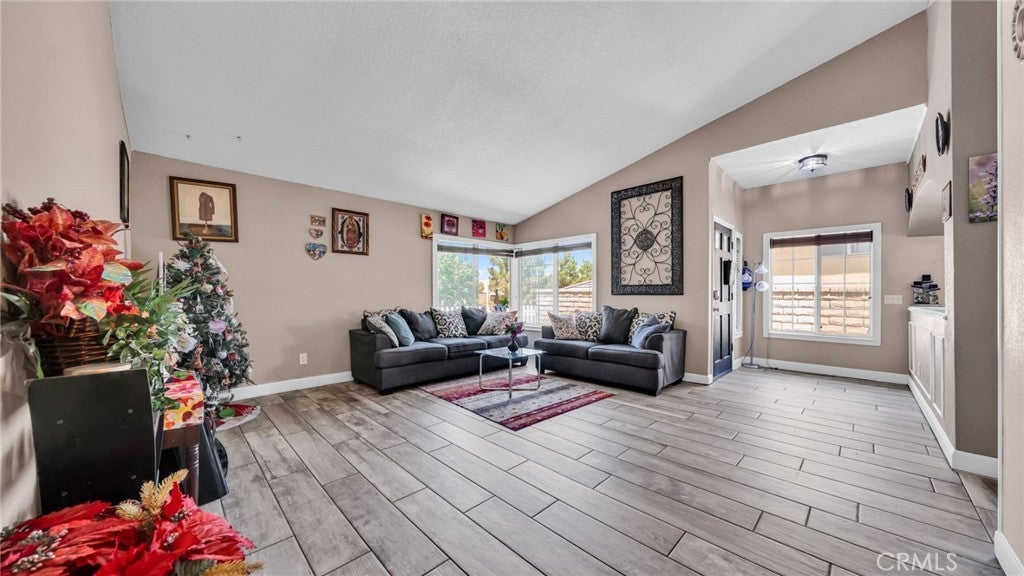 Welcome to this spacious and well-cared-for single-story home in a quiet Palmdale neighborhood. With 4 bedrooms, 2.5 bathrooms, and 1,824 square feet of living space, this residence offers a functional layout and a rare three-car garage, ideal for both growing households and buyers in need of extra storage or workspace. Inside, you’ll find a bright, open floorplan with durable ceramic tile flooring throughout and abundant natural light. The formal living and dining rooms offer a welcoming space for gatherings, while the generously sized family room features a fireplace and opens to the kitchen for comfortable everyday living. The kitchen has been stylishly updated in recent years with quartz countertops, white cabinetry, and stainless steel appliances, blending a clean, modern look with practical function. All four bedrooms are generously sized, including a primary suite with an en-suite bath and ample closet space. Two additional bathrooms, one full and one half, offer convenience for family and guests. Upgrades include an updated electrical panel, newer finishes, and a fully landscaped front and rear yard that provide a move-in-ready feel with low maintenance outdoor living. The oversized three-car garage adds exceptional value, whether for parking, storage, or weekend projects. Located near local schools, shopping, and commuter routes, this home offers space, curb appeal, and functionality in one of Palmdale’s most established residential communities.