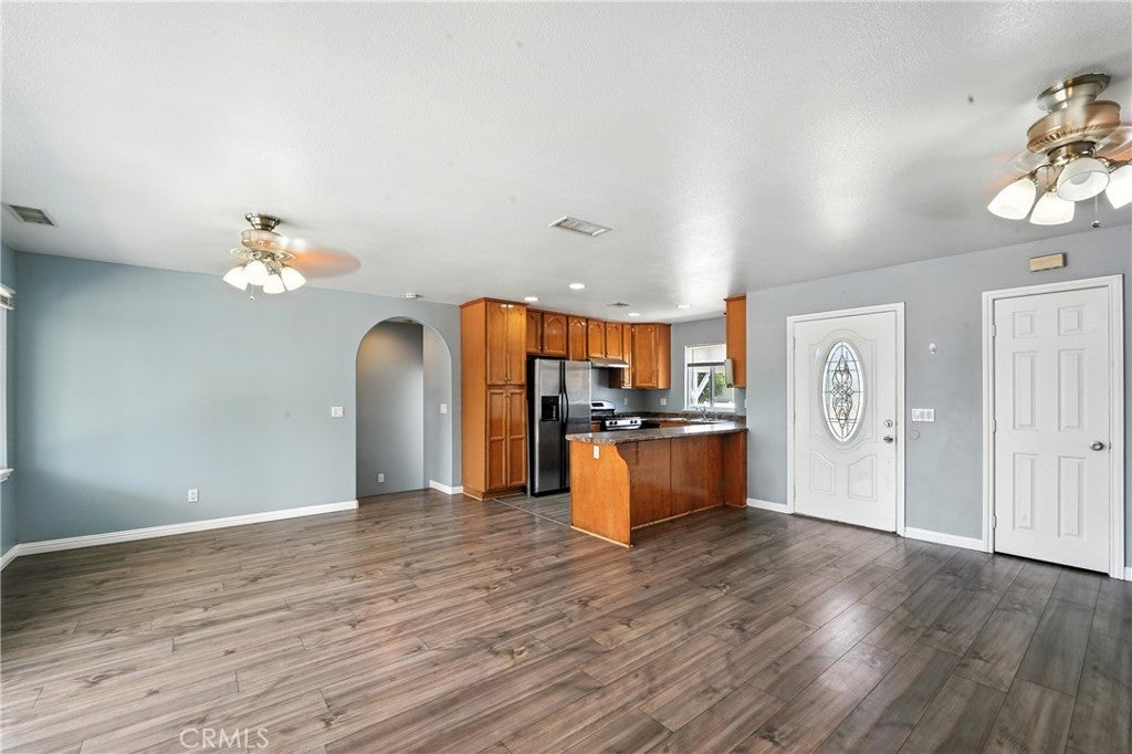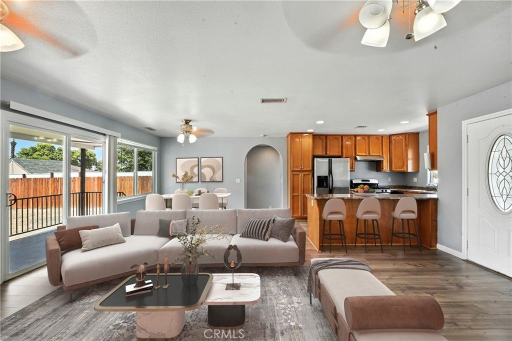 Welcome to this spacious home located in the heart of Hemet. This property offers 3 bedrooms, 2 bathrooms, plus a bonus bedroom. The open-concept floor plan features a large living room that flows into the dining area and kitchen. The kitchen provides ample cabinet space and functionality for everyday use. The bedrooms are generously sized, and the home is equipped with central air conditioning and heating. A sliding glass door leads to the backyard, offering plenty of space for outdoor activities and entertaining. Additional improvements include recent interior and exterior paint, giving the home a fresh and updated appearance. This move-in-ready home combines space, comfort, and convenience—an excellent opportunity for buyers seeking a well-maintained property in Hemet.
