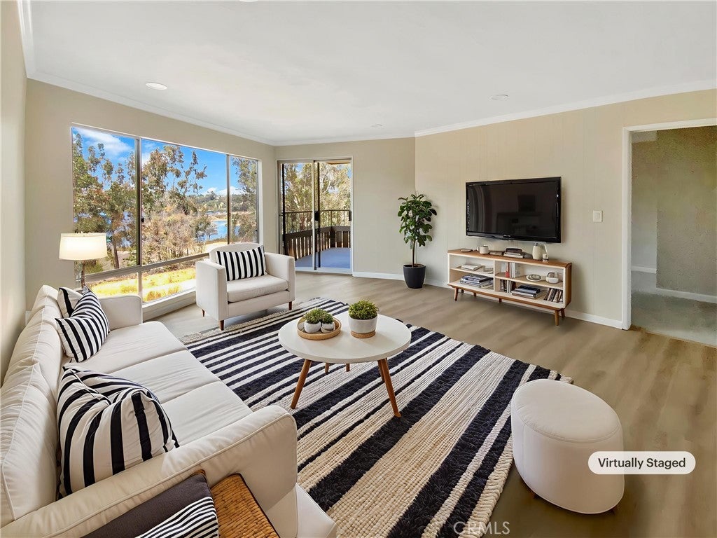 This is a spectacular opportunity to own a lake-view condo that is a stone's throw from some of the best walking trails in La Mesa. This 2 bedroom, 2 bath condo offers 180-degree views of Lake Murray from every room and has large picture windows that allow an abundance of natural light throughout the day. With 950 square feet, this inviting residence has a bedroom and a full bath on each side of the living room, so converting it into an office or having guests stay over would be very convenient. Not only is this condo located around desirable shopping and delicious dining, but it also has amenities that make you feel like youre at a resort. These beautifully landscaped grounds offer 2 ponds, 5 swimming pools, 4 spas, a gym with new equipment, pickleball courts, tennis courts, RV parking, a recreational room to rent out with a full kitchen, a billiards room, and even a carwash. The unit has one free parking space and plenty of guest parking. The laundry room is located right across from the unit, making it feel like it has in-unit laundry that is quick and accessible. If you want to escape your day-to-day life and get lost in your thoughts, all you have to do is walk down behind the unit, and immerse yourself in the 6-mile walk around Lake Murray, and enjoy the beautiful lake with incredible sunsets in the evening.