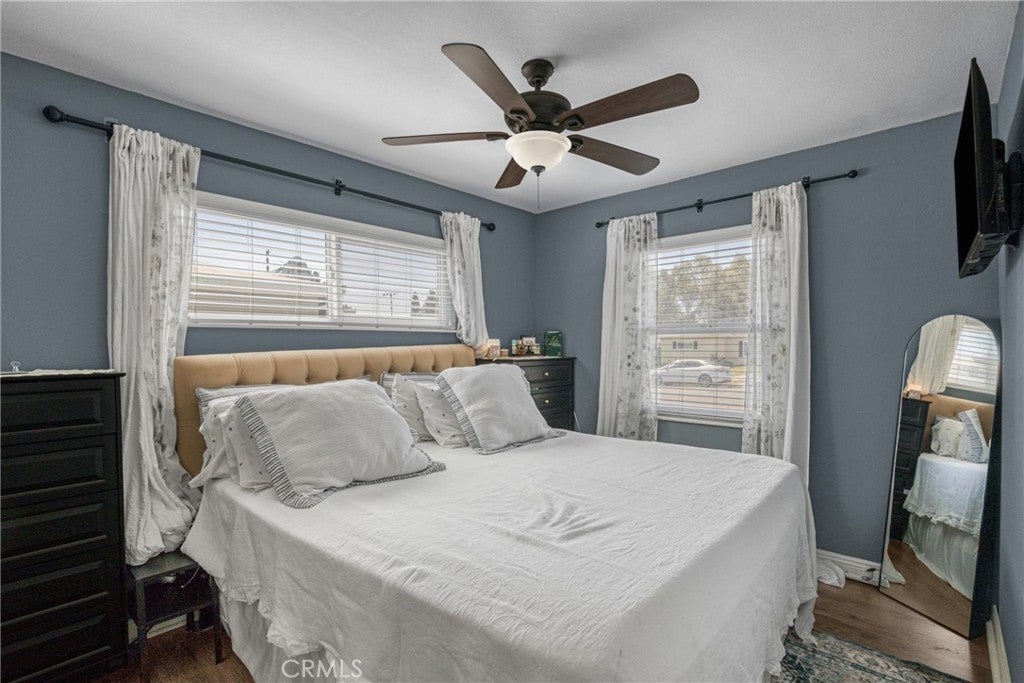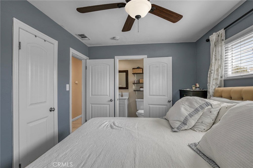 Presenting this fully remodeled, contemporary ranch-style residence featuring three bedrooms and two refined bathrooms. The property has been meticulously upgraded throughout, incorporating premium finishes and superior craftsmanship. At the center of the home is a chef's kitchen equipped with an expansive quartz island, ideal for hosting gatherings, family events, or content creation. Both bathrooms have been elegantly redesigned, offering designer vanities and sleek quartz countertops for a luxurious feel. Significant system enhancements provide efficiency and peace of mind: a new roof fitted with fully paid-off solar panels, an updated electrical panel, new furnace, ducting, and a high-efficiency air conditioning system perfect for maintaining a comfortable year-round climate. Upgrades also include comprehensive copper piping, which is naturally non-toxic, corrosion-resistant, and contributes to improved water quality by eliminating up to 99.9% of pathogens. The backyard has been transformed into a premier space for entertaining, featuring newly installed turf, a modern pergola with recessed lighting, and tastefully stained concrete that encourages seamless indoor-outdoor living. Enhanced landscape lighting creates an inviting ambiance, ideal for evenings with guests or memorable BBQs. Each improvement reflects careful attention to detail, quality, and long-term durability. This move-in-ready modern ranch home is designed for comfort, entertainment, and minimal upkeep. Additionally, the property qualifies for the City of Ontario’s 20% Down Payment Assistance Program, offering reduced monthly payments without mortgage insurance on a conventional loan.