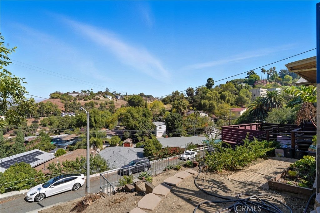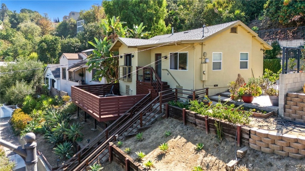 Charming Hillside Home with Stunning Views. Nestled up in the hills, this inviting 2-bedroom, 1-bathroom home offers beautiful views and a bright, airy atmosphere. Walk up a wooden staircase to your home. Inside, you’ll find wood flooring, recessed lighting, and a nicely updated kitchen perfect for everyday living. The spacious main bedroom features French doors that open to breathtaking hillside views. Enjoy outdoor living on the large deck, ideal for relaxing or entertaining, plus a generous backyard and side yard. This home is filled with natural light and offers modern comforts, including indoor laundry, central heating and cooling, and a tankless water heater. Plenty of street parking. Conveniently located near freeways for an easy commute.