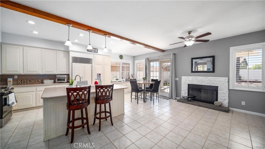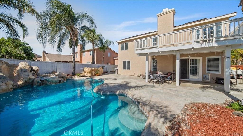 Welcome to your dream home! This beautifully upgraded 4-bedroom, 3-bath residence offers an open, inviting layout with a spacious bonus room—perfect for a home office, game room, or private retreat. Throughout the home, you’ll find custom window shutters, dual-zone central AC, and a cozy gas fireplace that create the perfect blend of comfort and style. The chef’s kitchen is the heart of the home, featuring a massive island with Corian countertops, a Sub-Zero refrigerator, brand-new stainless steel appliances, and a built-in water filtration system—ideal for entertaining and everyday living. Upstairs, unwind in the luxurious primary suite, complete with a private lounge area, a large balcony with sweeping mountain views, and an elegant en-suite bath offering dual sinks, a glass-enclosed shower, and a relaxing soaking tub. Step outside to your own private oasis—a resort-style backyard with a sparkling pool and rock slide, a soothing spa, and plenty of space for gatherings under the California sun. Additional features include a 3-car garage and an oversized driveway with ample parking for guests or recreational vehicles. Homes like this don’t come around often—schedule your private showing today and experience the beauty of Copper Canyon living for yourself!