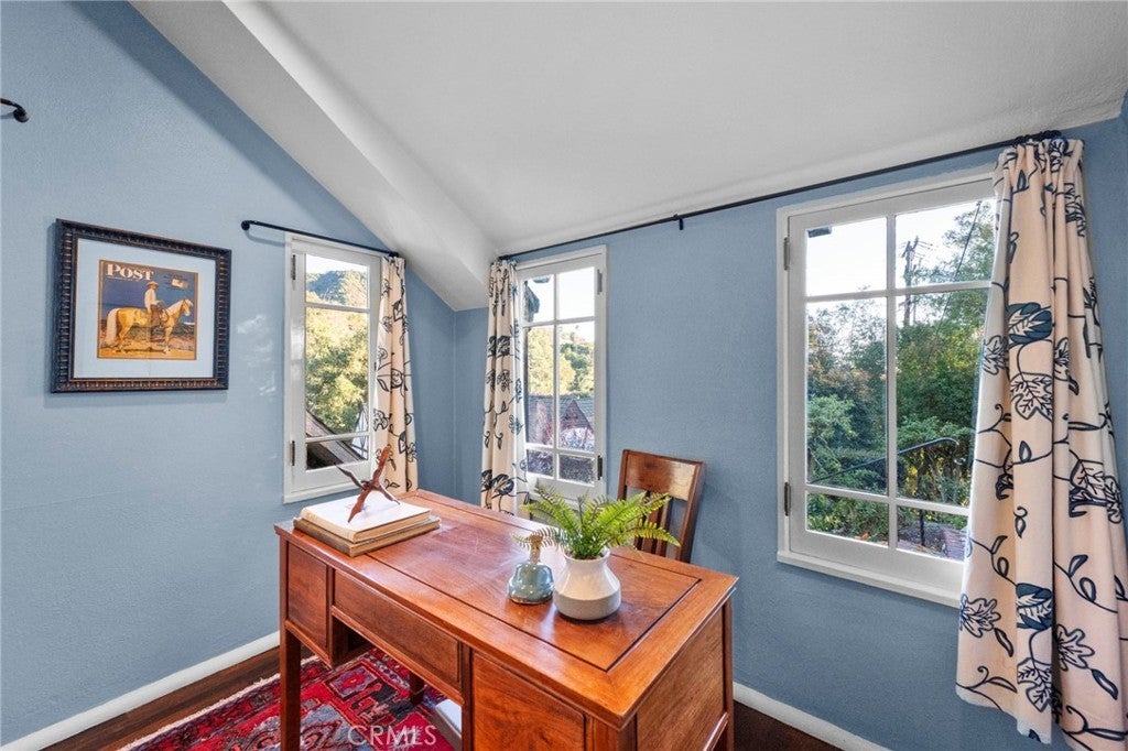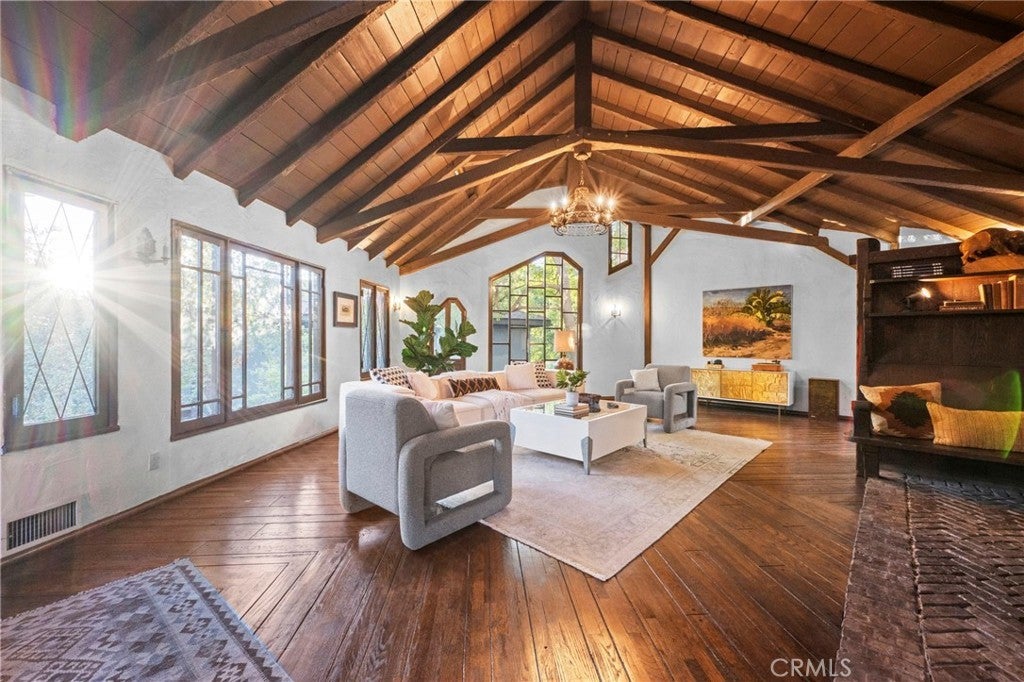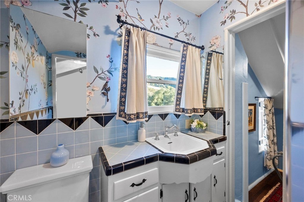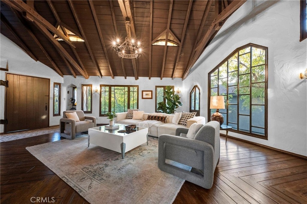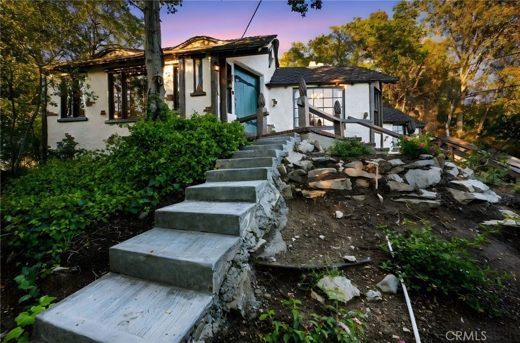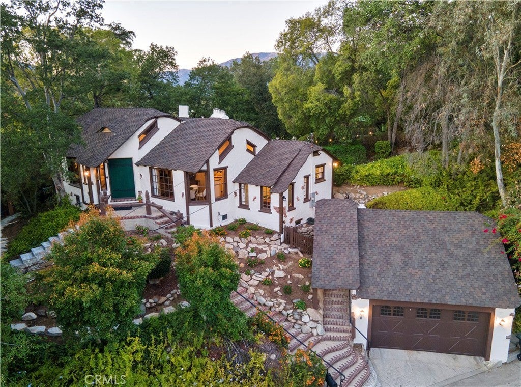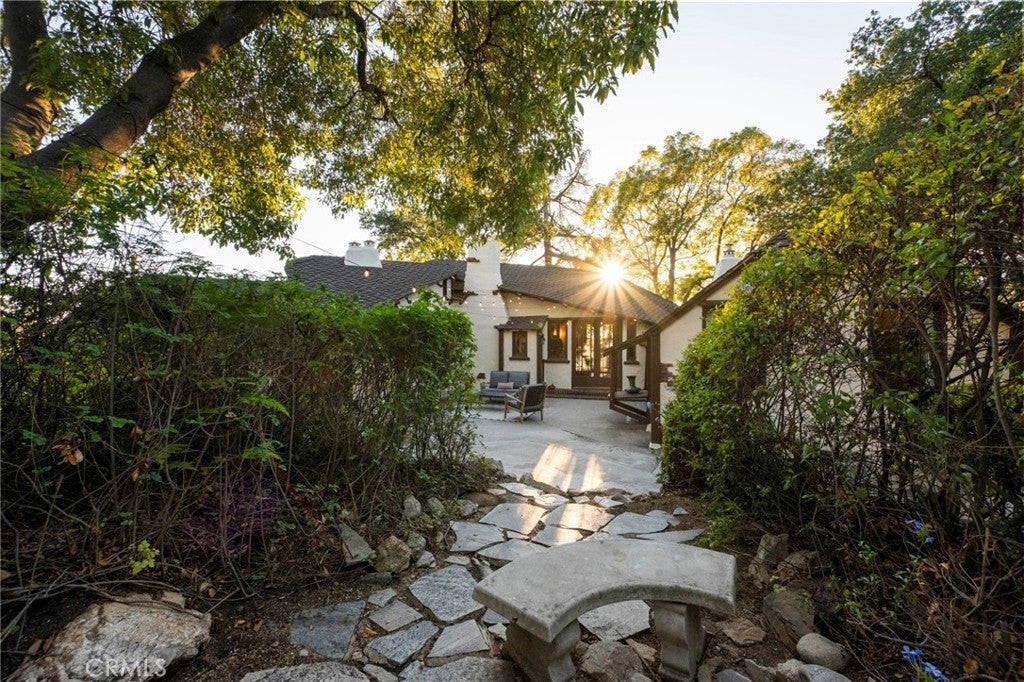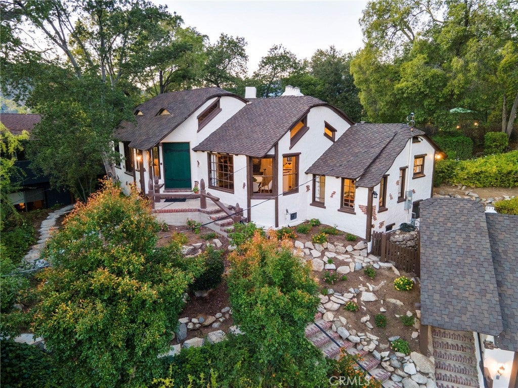 MILLS ACT APPROVED!! Home is now eligible for significant property tax reduction! The MacBride House (1924) — A rare 3-bedroom, 2-bathroom, 1,552-square-foot Storybook Tudor tucked into the trees of Glendale’s Verdugo Woodlands, revived through a meticulous two-year restoration that brought back its original soul while introducing modern comfort. Approved for the Mills Act, this home offers not only a connection to Glendale’s architectural heritage but also significant long-term property-tax savings. Built by an English craftsman who once worked for early Hollywood film studios, this home feels like it was lifted straight from Disney’s Snow White, with whimsical rooflines, arched doorways, and hand-carved details that radiate storybook magic. Inside, vaulted open-beam ceilings and leaded-glass windows fill the grand living hall with soft light that glows across refinished wood floors. The clinker-brick inglenook fireplace, flanked by original hand-carved benches, stands as the heart of the home and a masterpiece of 1920s design. The kitchen and baths have been restored with an artist’s restraint, new time period inspired wallpaper, reglazed sinks, new distressed vintage flooring in bathrooms and kitchen and new classic fixtures chosen in a way to preserve the home’s authenticity. Behind the beauty, every system has been thoughtfully modernized, updated plumbing, updated electrical, dual-zone HVAC, and an EV-ready two-car garage with a finished attic loft perfect for a creative studio or private retreat. The 10,226-square-foot lot unfolds into a private paradise of meandering garden paths, intimate patios, and mountain views that make you feel completely tucked away from the world while still only five minutes from the conveniences of modern life. Even the back staircase carries a homage of Glendale’s story, built from old railroad ties that reflect what once supported the trolley network that brought residents to this hillside haven a century ago. The Glendale Historical Commission has already met and formally recommended the home for Mills Act approval, with final City Council confirmation expected soon, offering the next owner both the pride of preservation and the potential for long-term property tax savings. The MacBride House is more than a home; it is a living story; a fairytale refuge that celebrates craftsmanship, imagination, and the timeless beauty that first made Glendale one of California’s most enchanting communities.