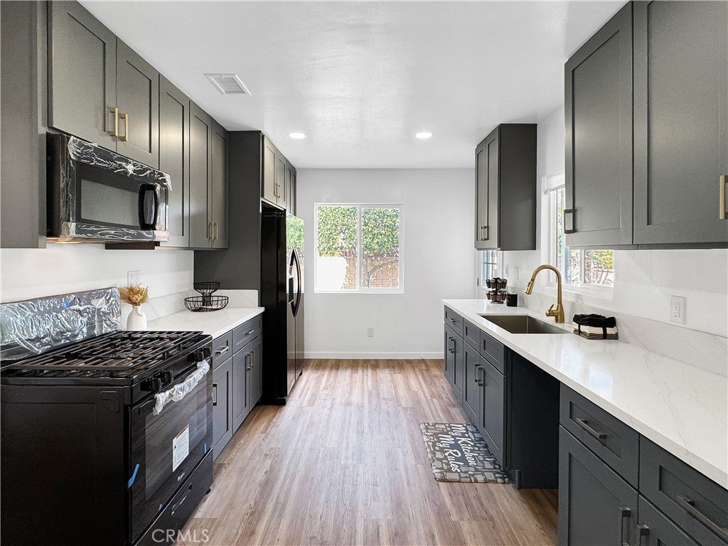 Completely remodeled and move-in ready home in the great city of PICO RIVERA! This stunning 3 bedroom 2 bathroom single-story home features a bright and inviting living space with recessed lighting, new flooring, and an open layout perfect for relaxing or entertaining. The newly remodeled kitchen features quartz countertops, sleek cabinetry, gold hardware, and brand-new appliances. Every detail has been thoughtfully updated, from the bathrooms with stylish vanities and modern tile work to the spacious 3 bedrooms offering plenty of natural light. Both bathrooms have been beautifully updated with stylish tile work and beautiful finishes. Enjoy the convenience of an attached 2-car garage with laundry hookups inside, making everyday living a breeze. The covered patio extends your living area outdoors and can easily be enclosed to create a formal dining room or bonus space. The large backyard provides endless possibilities — perfect for gatherings, gardening, or future expansion like an ADU. Located in a quiet, desirable Pico Rivera neighborhood close to parks, shopping, and freeway access, this home offers the perfect blend of style, comfort, and practicality. Amazing opportunity, don't miss out and make this your forever home!