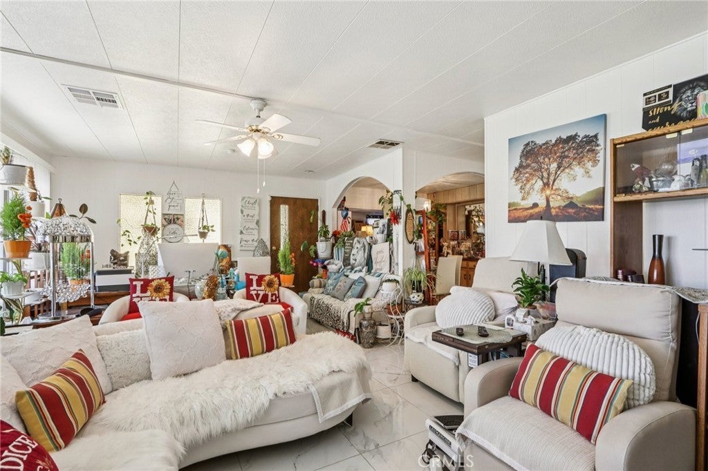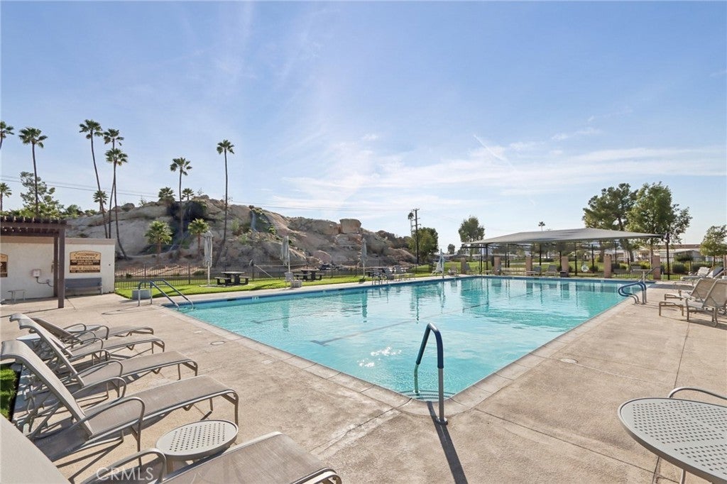 Welcome to 5001 W Florida Ave #208, nestled in the beautiful 55+ resort-style community of The Lakes at Hemet West. This charming 2-bed, 2-bath home offers 1,440 sq ft of open living space with beamed ceilings, tile flooring, and a bright kitchen with all appliances included. Enjoy the spacious primary suite with dual vanities, a soaking tub, and a walk-in shower, plus a private deck overlooking a serene lake. Encompassed by 150 acres of natural beauty, The Lakes at Hemet West offers unmatched amenities—featuring a 9-hole golf course, heated pool and spa, clubhouse with fitness center, library, and game rooms, plus pickleball, bocce, and walking trails. Don't miss this amazing opportunity to experience peaceful, active living at its best in this vibrant gated community!