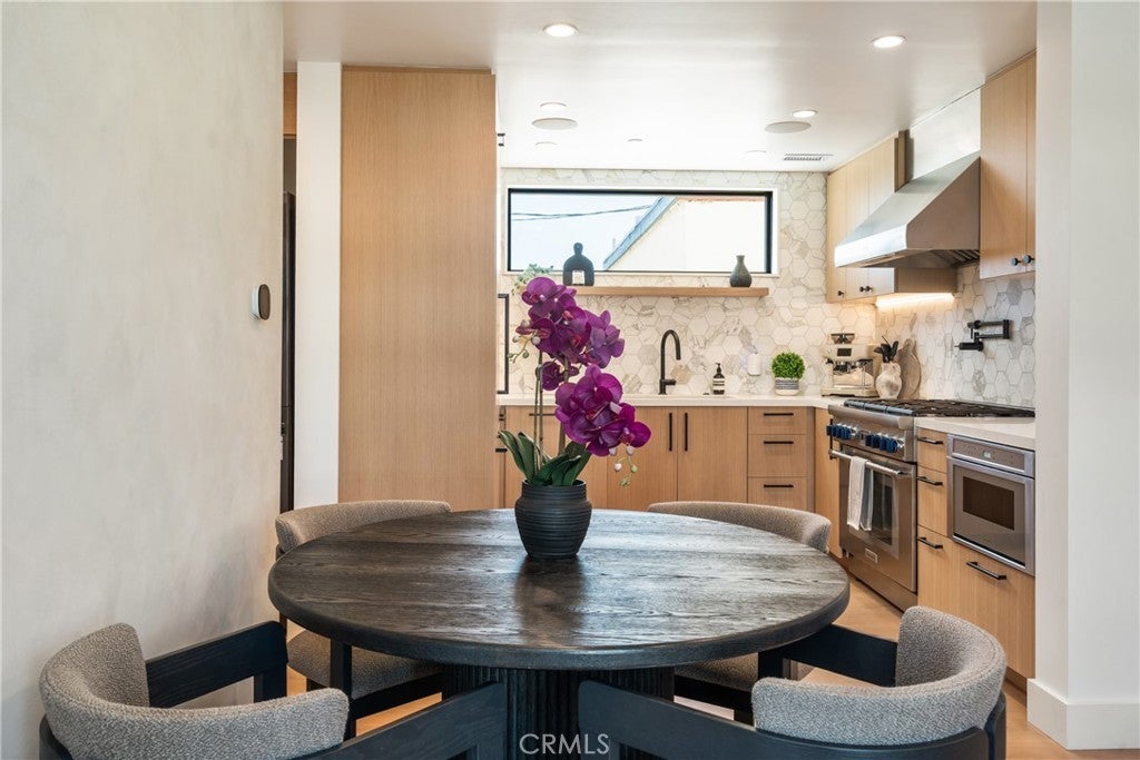 The Flower Streets, Tucked into the heart of Corona del Mar’s Village, 521 ½ Iris Avenue blends modern design with the relaxed charm of coastal living. This brand-new back unit built in 2024 is more than a home—it’s a lifestyle. Wake up and stroll to local cafés, spend afternoons at world-class beaches just blocks away, and enjoy evenings on your rooftop patio with panoramic city-light views. The residence offers approximately 1,100 square feet across three levels, with two bedrooms and two-and-a-half baths. An open-concept main level flows seamlessly from the living and dining areas into the kitchen and out to a covered deck, creating an effortless indoor/outdoor vibe. Thoughtfully designed with details like wide-plank white oak flooring, vaulted ceilings, custom tilework, accent walls, and indoor/outdoor audio, the home combines comfort with sophistication. The one-car garage features epoxy flooring and a modern glass roll-up door, complemented by an additional covered parking space. The chef-inspired kitchen showcases quartz countertops, white oak cabinetry, Thermador appliances—including a built-in refrigerator—open shelving, and a pot filler. Upstairs, the primary suite offers a private balcony, a walk-in closet, dual sinks, and a floating vanity. Clean, contemporary architecture enhances the exterior, while the unbeatable location puts you close to Fashion Island, Laguna Beach, boutique shops, top-rated schools, and the vibrant everyday energy of the Village.
