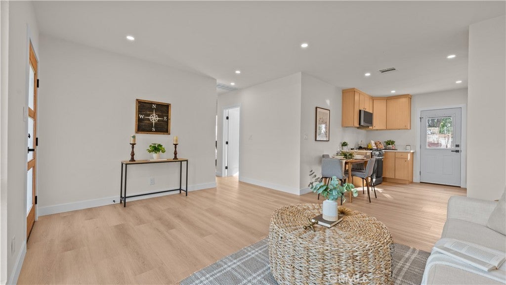 Prepare to be captivated by this stunning residence located in a highly sought-after La Puente neighborhood. From the moment you arrive, the property exudes a sense of elegance and style. Situated beyond a private driveway, it's a hidden gem on a luscious lot. Step inside, and you'll immediately notice the abundance of natural light that fills every corner of this home. The wood flooring underfoot adds a touch of warmth and sophistication, creating an inviting atmosphere. The chef's gourmet kitchen is not only a culinary enthusiast's dream but also a focal point for social gatherings and culinary creativity. For those who value versatility, this property boasts attached garage with a private driveway. The back yard holds exciting potential as it can be converted into an Accessory Dwelling Unit (ADU). Whether you're seeking additional living space, a source of rental income, or a dedicated space for your hobbies and aspirations, this option greatly enhances the property's value.