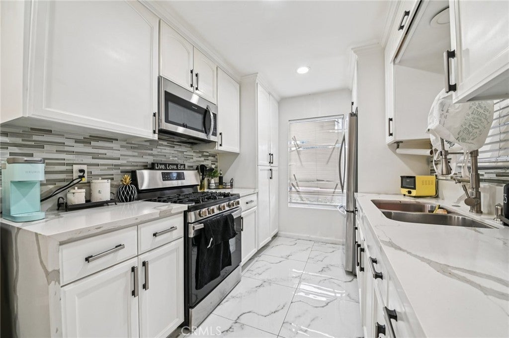 Welcome to 1430 Cabrillo Park Dr #B — a beautifully updated 2-bed, 2-bath condo located in the highly desirable Cabrillo Park community of Santa Ana. This ground-level unit offers a bright and open floor plan with sleek tile flooring throughout, creating a clean and modern feel. Large windows and sliding doors bring in plenty of natural light, making the home warm and inviting. The kitchen has been stylishly upgraded with quartz countertops, modern white cabinetry, glass tile backsplash, and recently updated stainless steel appliances. Both bathrooms have been fully remodeled, featuring elegant tile work, updated vanities, and contemporary fixtures. Enjoy the comfort of central air and heat, a designated parking spot, and a private patio perfect for relaxing outdoors. The community features lush landscaping, walking paths, and serene water features, offering a peaceful and well-maintained environment. Conveniently located near shopping, restaurants, parks, and easy freeway access, this move-in-ready home is perfect for first-time buyers, downsizers, or investors. Don’t miss this incredible opportunity!
