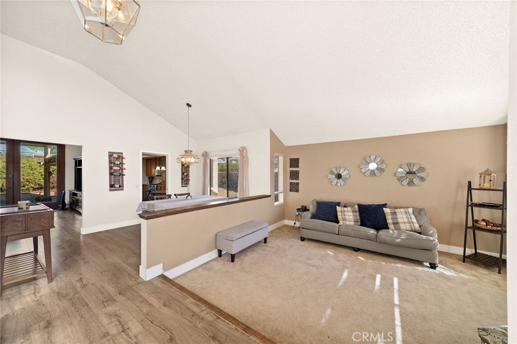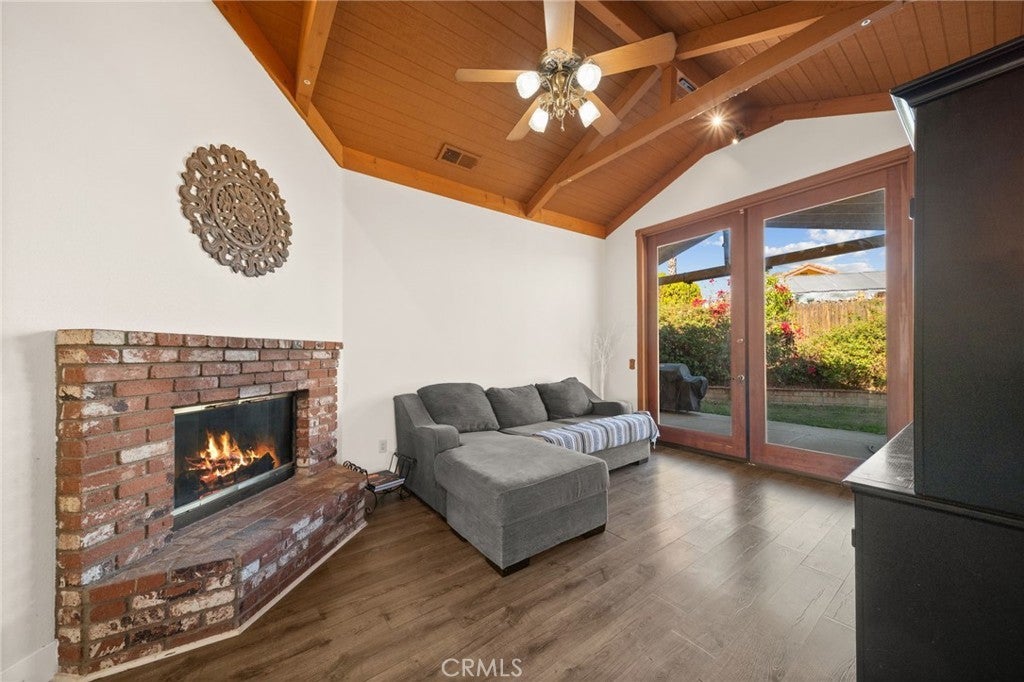 Welcome to this inviting 1,602 sq ft, 3 bedroom, 2 bathroom home on an expansive 8,276 sq ft lot, one of the biggest in the area! Home is located at the end of a cul-du-sac and is pie shaped making it ideal as majority of the sq ft is located in the backyard, perfect for gatherings! Step inside to vaulted ceilings and a bright, open layout featuring both a formal living room and a cozy family room with a fireplace. The floor to ceiling french doors in the family room along with the beautiful vaulted window in the entrance fill the home with so much natural light! The spacious kitchen flows into the living room and dining area, making it perfect for everyday living and entertaining. The formal dining space opens into the formal living room perfect for hosting the holidays! The home also features a separate laundry room that leads into the garage allowing 100% of the two car garage to be utilized. Bedrooms are all a great size! The primary bedroom includes a walk-in closet, a private restroom for added comfort and privacy, and large french doors that open beautifully to the backyard and also allow for vast natural light to enter. The hallway has plenty of storage space and the layout of the home is very inviting! Outside, the large backyard offers endless possibilities. The covered patio is ideal for relaxing or hosting gatherings, and the oversized lot gives you plenty of room to create your own outdoor paradise. In the heart of Moreno Valley and just minutes from schools, shopping, and dining, this home delivers both convenience and comfort. This home is a gem, make it yours today! Thank you for touring!