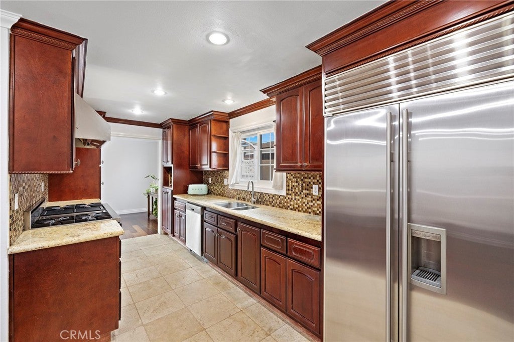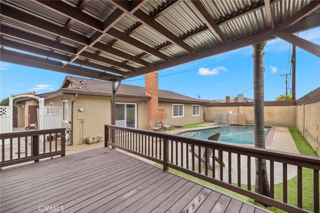 Welcome to this beautifully updated 4-bedroom, 3-bath residence located in the desirable West Garden Grove community, just minutes from local beaches. Offering approximately 1,913 square feet of living space on a 6,000 square foot lot (buyer to verify), this home provides a comfortable and flexible layout designed to accommodate a variety of living needs. A standout feature is the extra-large bonus room with a private bathroom and walk-in closet, currently used as an expansive primary suite. This space may offer potential for multi-generational living or guest accommodations, with a roughed-in kitchen area already in place (buyer to verify permits, intended use, and feasibility). The home features engineered hardwood flooring throughout, a bedroom with an en-suite bathroom, and a well-appointed kitchen with granite countertops and Viking appliances. Recessed lighting enhances the main living areas, which provide ample space for a home office, dining area, breakfast nook, or other flexible uses to suit a variety of lifestyles. Recent improvements include a newer roof, remodeled bathrooms, dual-pane windows, fresh interior paint, and a newer heating system. The private backyard is ideal for outdoor enjoyment and entertaining, featuring a covered wood deck and a saltwater pool, creating a welcoming retreat. Conveniently located with easy access to the 405, 22, and 605 freeways, the property is near a variety of restaurants, shopping, grocery stores, parks, and local schools (buyer to verify school districts and enrollment). With attractive curb appeal and a well-maintained neighborhood setting, this move-in-ready home offers an exceptional blend of comfort, functionality, and location. A wonderful opportunity to own in one of West Garden Grove’s most sought-after areas—where everyday convenience meets relaxed Southern California living.
