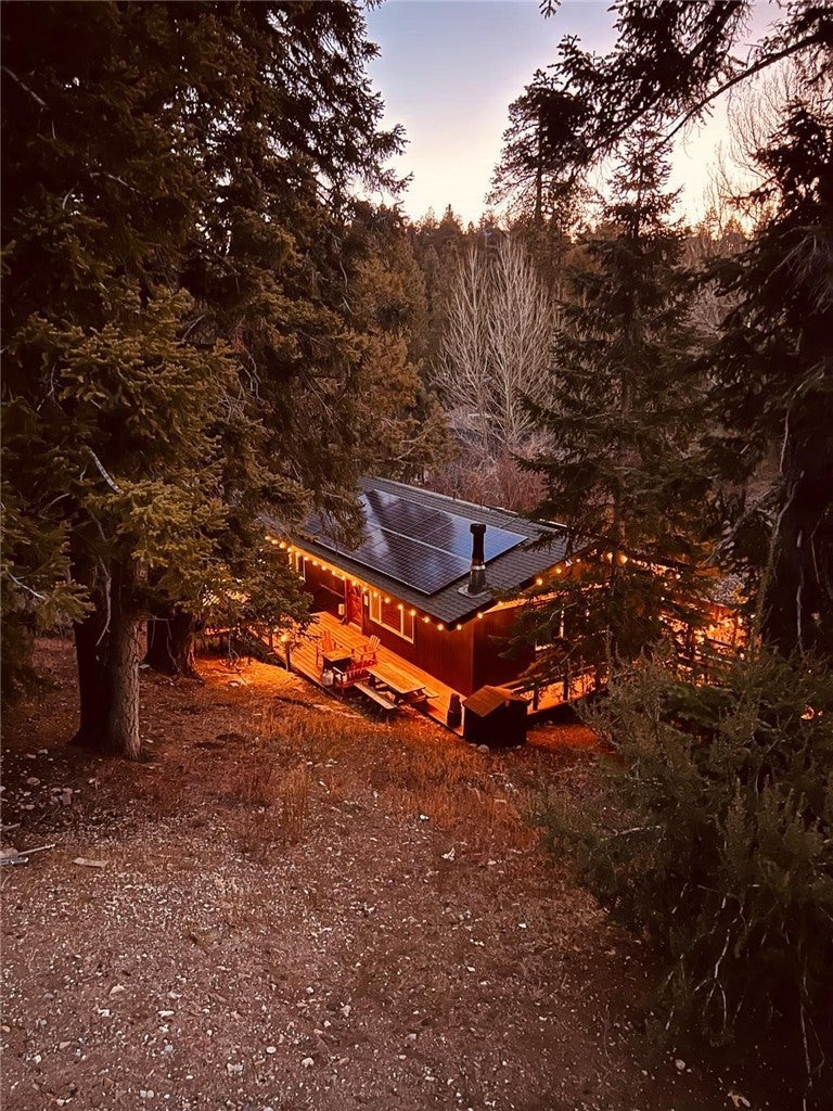 Nestled in the forest tress in the highly desirable Moonridge neighborhood is a cabin that offers the perfect blend of seclusion, scenery, and convenience. Breathtaking views from two expansive decks, this home truly captures the essence of Big Bear Lake mountain living. Just a short walk to Bear Mountain Ski Resort and the golf course, the cabin features a professionally designed open-concept layout with a warm, modern cabin aesthetic. A cozy fireplace anchors the main living space, creating an inviting retreat after a day on the slopes or trails. Outdoor living shines here— unwind in the spa/jacuzzi, or enjoy the dedicated barbecue area surrounded by nature. Additional features include owned solar panels, a 220-volt electric car charger, and an approximately 150 sq ft bonus basement, ideal for storage, a game room, or creative flex space. Located minutes from Bear Mountain, the Big Bear Alpine Zoo, hiking trails, and Moonridge’s local favorites, this property offers both tranquility and easy access to year-round recreation. The home has successfully operated as a short-term rental, making it an excellent opportunity for investors as well. An approximately 5% assumable interest rate loan may be available, subject to lender approval and buyer qualification. Cabin includes all furnishing. Sale includes all furnishings, making this a truly turnkey opportunity—perfect as a primary residence, second home, or income-producing mountain getaway. Well-located mountain cabin in a desirable Big Bear neighborhood, short walk to Bear Mountain Ski Resort and the golf course. The home features a professionally designed, open-concept interior with a comfortable, modern-cozy moody ambiance and a fireplace in the main living area. Outdoor features include a private balcony, barbecue area, and spa/jacuzzi. Additional upgrades include owned solar panels and a 220-volt electric vehicle charging outlet. Conveniently located near Bear Mountain Ski Resort, the Big Bear Alpine Zoo, and a nearby golf course. Property has been used as a short-term rental with a strong occupancy rate(buyer to verify permitted use) An approximately 5% assumable loan may be available, subject to lender approval and requirements. Buyer to verify eligibility and all loan terms directly with the lender Cabin will include all furnishing.
