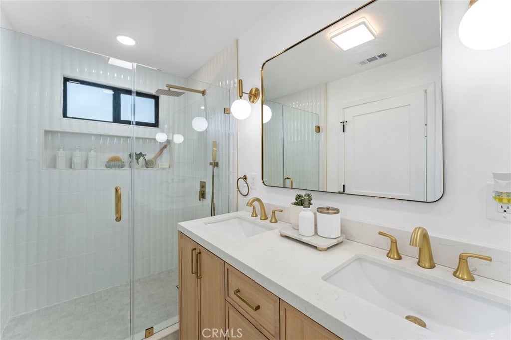 Welcome to a masterfully restored Spanish-style sanctuary in the View Park neighborhood, where old-world charm seamlessly blends with contemporary convenience. This special home greets you with an inviting terracotta-tiled front porch, perfect for sipping your morning coffee in the sun. Step into the expansive living room, bathed in natural light and rich with character, featuring a classic fireplace adorned with vintage Batchelder tile. The heart of the home is a chef’s dream kitchen, boasting custom cabinetry, quartzite countertops, designer backsplash tile, and brand-new appliances to elevate your culinary experience. The second floor offers two light-filled primary suites, each with luxurious retreat-style bathrooms and modern lighting. Two additional bedrooms on the first floor provide versatility and ample space, sharing a beautifully appointed second bathroom with custom tile finishes. The backyard is an entertainer’s paradise, offering multiple options for hosting, with fresh landscaping and a large deck ideal for al fresco dining or twilight gatherings. The two-car garage provides coveted bonus space, perfect for a gym, home office, or potential ADU conversion. Ample parking is available in the driveway, with room both in front of and behind the gated entry. Additional improvements include updated plumbing and electrical systems, a new roof, new driveway, new HVAC, and new windows. Enjoy close proximity to Downtown Los Angeles, Leimert Park Village, SoFi Stadium, Downtown Culver City, Playa Vista, West Adams, and one of LA’s most beloved green spaces, Kenneth Hahn Park. You’re also near local favorites such as Jon & Vinny’s, Helen’s Wines, Hilltop Coffee + Kitchen, Simply Wholesome, the Culver City Stairs, and more. This exceptional home has been waiting for you and is truly a must-see to appreciate!