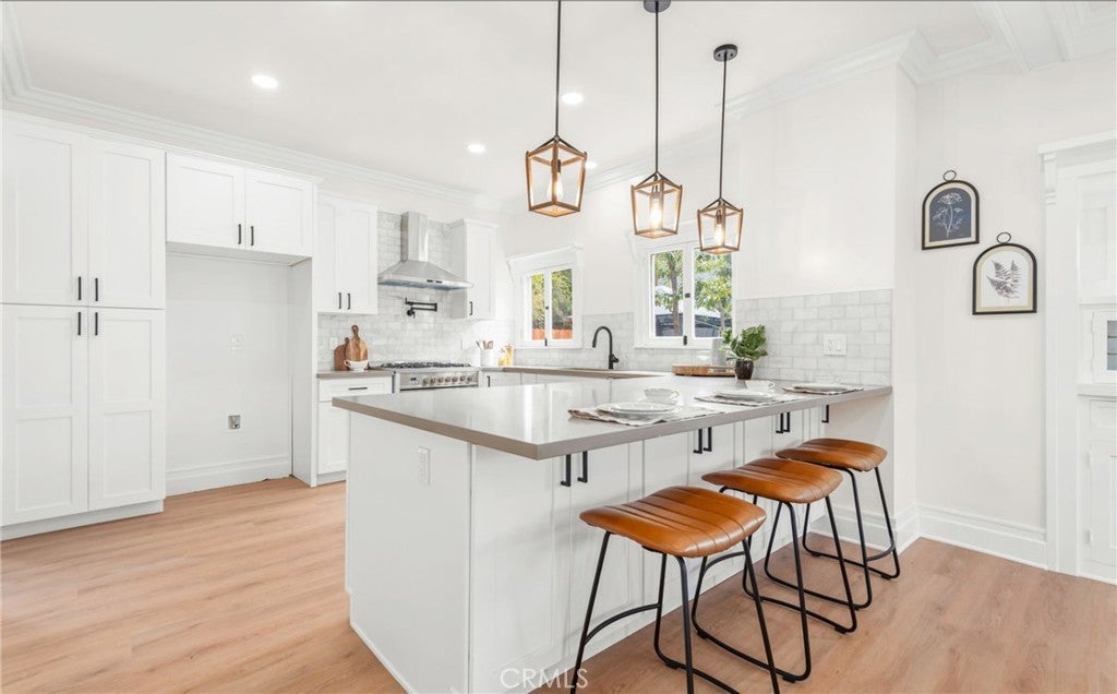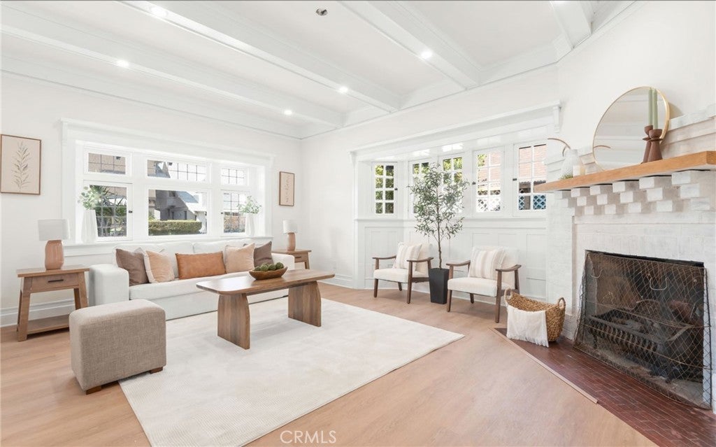 Welcome to this beautifully updated Craftsman home that blends timeless architectural details with thoughtfully modernized interiors. Located on a Harvard Heights home. Offering 3-bedroom, Dan and 3-bath home is move-in ready and full of character. Step inside to find soaring ceilings, original woodwork, and stunning new wide-plank oak-style flooring throughout. The living and dining areas are spacious and filled with natural light, featuring restored original windows, custom millwork, and a cozy fireplace with a handcrafted wood mantel. The fully renovated kitchen offers quartz countertops, white shaker cabinets, designer tile backsplash, and stylish pendant lighting. The layout is perfect for hosting, with an open flow to the dining area and breakfast bar seating. Additional features include updated bathrooms, fresh interior/exterior paint, new HVAC system, modern fixtures, and a large laundry area. Conveniently located close to parks, cafes, shops, and easy access to freeways. Don’t miss this perfect blend of vintage charm and modern comfort!