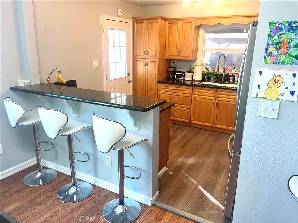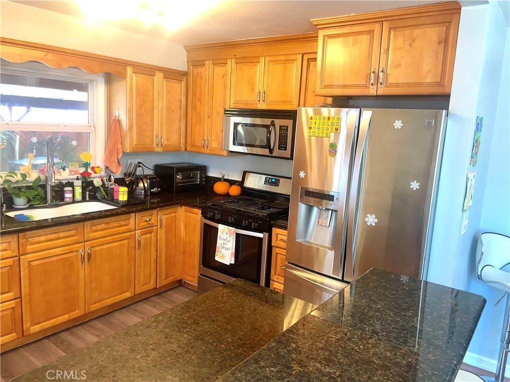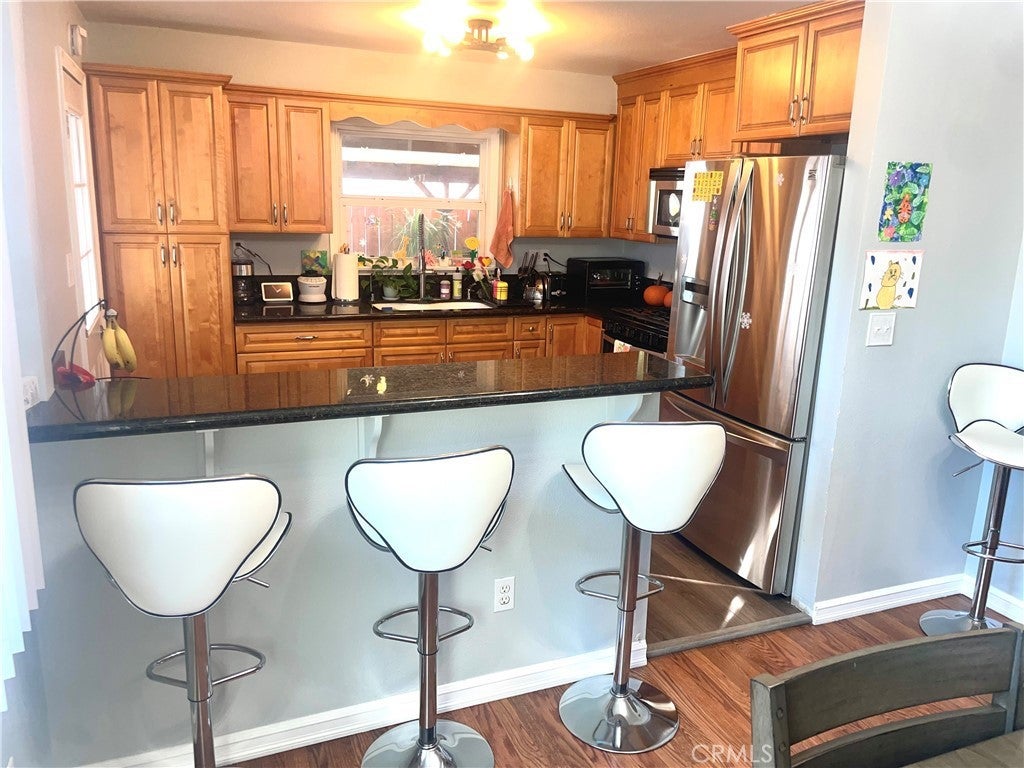 Welcome to this beautiful home is San Bernardino Ca. Home offers 2 bedrooms and 1 full bathroom with a large lot and backyard of over 9,000 sqft. with a detached 2 car garage. This Gem of a Home has been well maintained and is in a desirable area in a very nice neighborhood. Located in a beautiful tree line street with nice green lawns and mature trees and both side of the street. Enjoy the cozy wood burning fireplace located in the living room, home features laminate hardwood flooring throughout the home and the beautiful kitchen is a semi open concept featuring granite countertops, upgraded kitchen cabinets with lots of storage space. You will enjoy the space and the size of the property, the home is great for entertaining with friends and family, parties or family gatherings. Great investment and great opportunity to purchase a property with big size Lot, great opportunity to build more on to the property or to add an ADU or add more units to the property if city allows it. Many options available