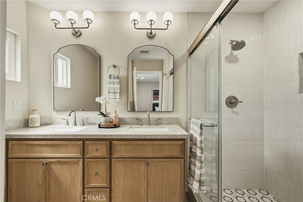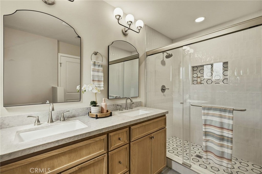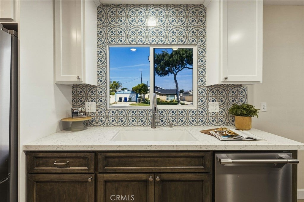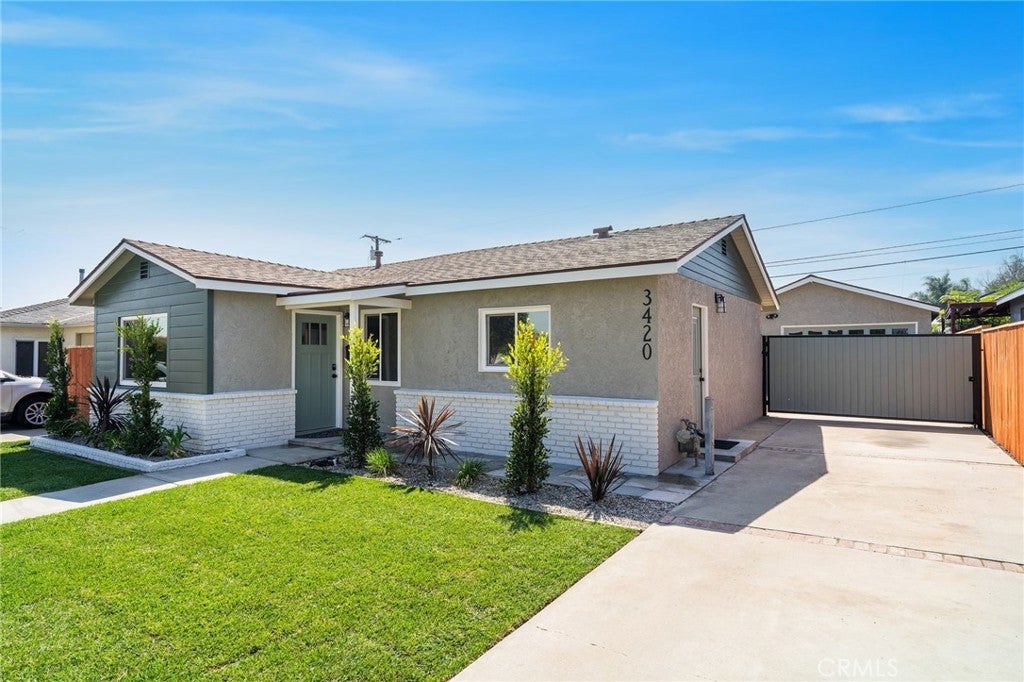 Welcome to this beautifully renovated 3 bedroom, 2-bathroom home located in desirable Torrance neighborhood. Featuring a bright open floorplan, the front living area flows through to the dining area and kitchen. The kitchen has been updated with new cabinets, sleek quartz counter tops, tile backsplash, stylish fixtures, and stainless-steel appliances. The spacious primary bedroom has attached ensuite bathroom and access to outdoor patio. Both the primary and hall bathroom feature new vanities, stylish new fixtures, and custom tile work. Other features include freshly painted interior and exterior, new luxury flooring throughout the living area and bedrooms, vinyl windows, new interior doors, new plumbing and light fixtures, HVAC system, new water heater, new garage door and motor.. This home is great for fun and entertainment with a great outdoor space. The private enclosed backyard has a large patio and a manicured yard. There is a two-car detached garage with additional off-street parking and gated driveway. Detached two car garage and spacious yard offers possible ADU potential. Buyer to verify all building codes and ADU guidelines with the city