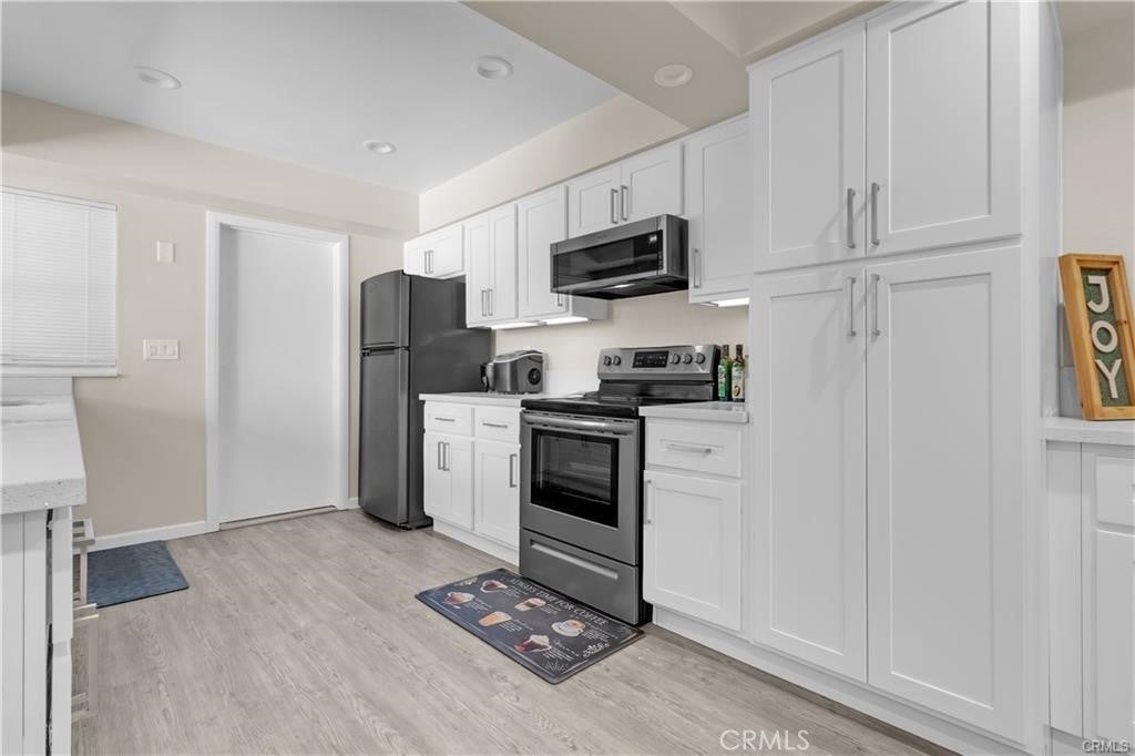 HOUSE + ADU, . The initial home is a 3-bedroom, 2-bathroom. To the left, entering the hallway to the master bedroom with a new master bathroom, his and hers closet. The other two bedrooms face the lovely backyard and share the hallway's new bathroom. The kitchen is a total delight with White cabinets, quartz countertops, and stainless-steel appliances. From the kitchen, you go into the patio and to the backyard through the French doors. Also, from the kitchen, there is a direct entry to the new unit with two bedrooms, two bathrooms, a storage closet, and a laundry area. The garage was transformed into a 2-bedroom, 2-bathroom unit to fit the needs of the extended family. Each of these two bedrooms has its own AC unit for convenience and energy savings. The unit has a private entrance from the patio, LOW maintenance landscaped backyard with automated sprinklers and beautiful night lighting. You have amazing views of the San Jacinto Mountains right out of your kitchen window (No HOA, No Mello-Roos taxes, Low property taxes), Lot Size is 15,246, enough space for RV Parking. Appliances Included: Stove, Dishwasher, Microwave & Fridge.