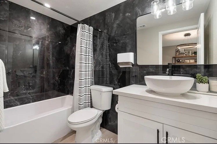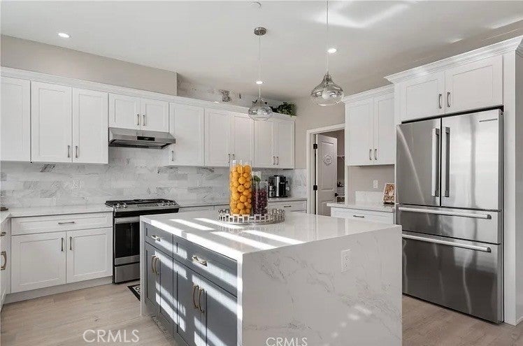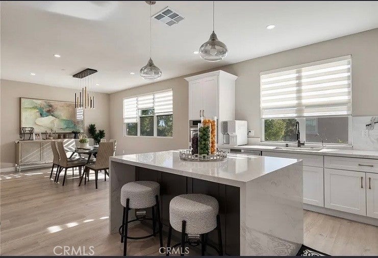 Welcome to 355 S Cypress Street. Located in the beautiful city of La Habra! It's the Largest floor plan in the community. High ceilings throughout the home makes the entire condo feel extra spacious. Numerous windows throughout which allows for natural light. Wonderful kitchen opens to an enormous dining room. Kitchen has soft closing drawers and cabinets. Large kitchen with quartz countertop and a large waterfall island. Brand new appliances (dishwasher, stove, microwave). Vinyl Flooring throughout. Large First Floor Suite with Den. Enormous Great Room. Two Bedrooms and Loft upstairs. Primary Bedroom has two closets. Primary Bathroom has dual sinks and walk in shower. Balcony/Deck on Third Floor has panoramic view of the neighborhood and hills. Large Laundry Room. 2 Car Direct Access Garage. Solar panels help lower electricity bill. Community has numerous guest parking and BBQ/Picnic area. Conveniently located near restaurants, shopping centers, markets, schools, parks, and more. Easy access to the 57, 5, and 91 Freeways. The homeowner is an interior designer. Over $150,000 in home upgrades, including Italian porcelain accents throughout. Pictures just do not capture the fine detail and craftsmanship!