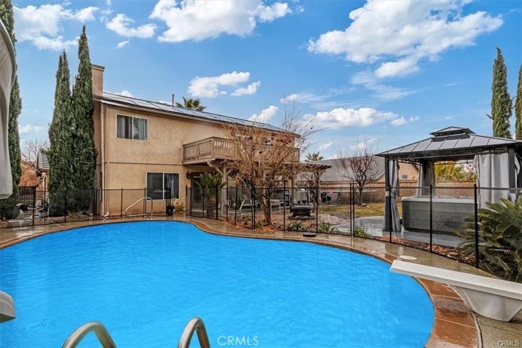 Step into this beautiful dream home at 42252 Blueflax Avenue—a stunning 4-bedroom, 3-bathroom retreat nestled in a serene, family-friendly Lancaster neighborhood. Built in 1997 and boasting 2,686 sq ft of thoughtfully designed living space, this home offers both comfort and style. The updated kitchen, with sleek tile flooring, flows seamlessly into a cozy dining area—perfect for family meals or entertaining guests. Plush carpeting in the bedrooms ensures comfort, while the versatile bonus room in the garage is ideal for a home office, gym, or extra storage. Upstairs, unwind on your private balcony and soak in breathtaking mountain views. Step outside to your own backyard oasis, complete with a sparkling pool and relaxing jacuzzi—your personal resort for hot summer days or peaceful evenings under the stars. With a spacious 3-car garage, central heating and cooling, and community amenities like biking paths, sidewalks, and a dog park, this home blends convenience with tranquility. This gem offers exceptional value and lifestyle appeal. Don’t miss your chance to make lasting memories in this beautiful Lancaster home—schedule your showing today!