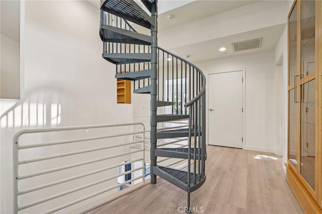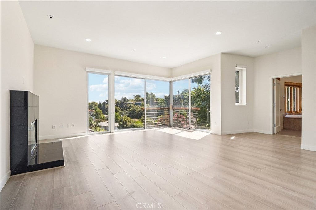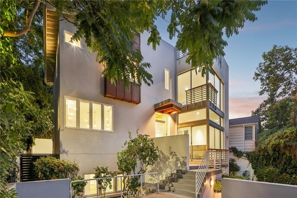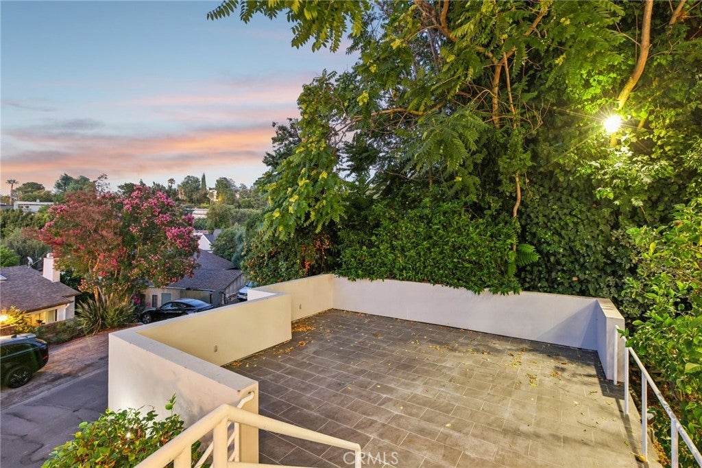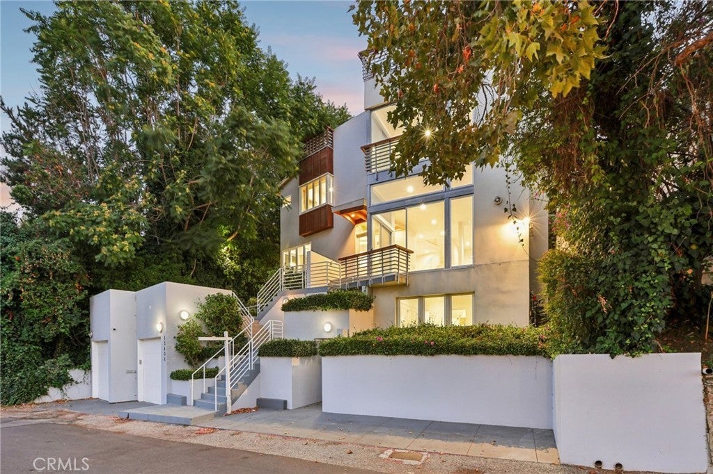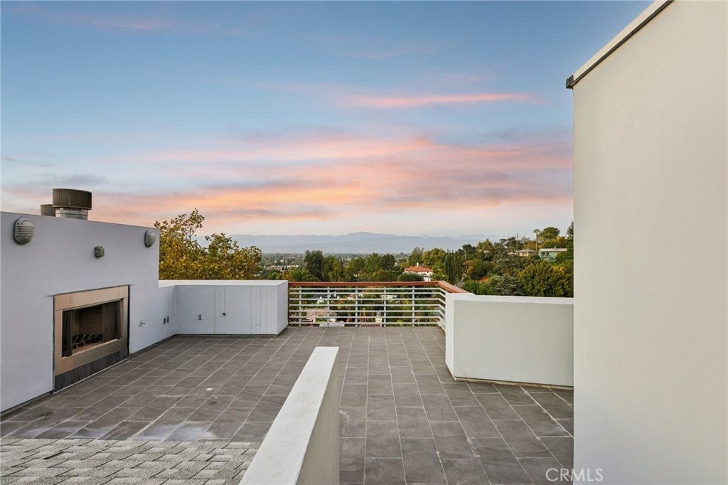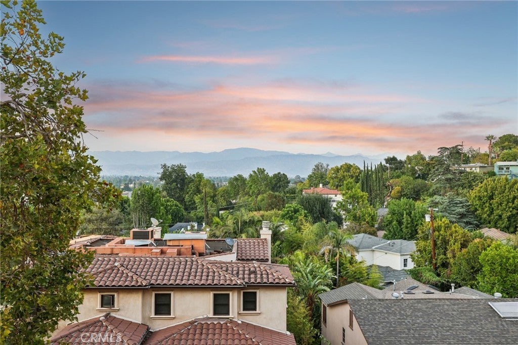 Welcome to this contemporary hideaway nestled south of Ventura Boulevard on a picturesque, tree-lined street in coveted Sherman Oaks. A striking architectural facade with geometric glass panels sets the stage for the light-filled interior, where floor-to-ceiling windows bathe the formal living and dining areas in California light, highlighted by an onyx fireplace and custom built-ins. The open-plan kitchen features stainless-steel appliances, abundant cabinetry, and a central island with a cooktop, flowing effortlessly into the family room, which opens via French doors to outdoor entertaining spaces. A private elevator connects all levels, leading to a generous rooftop deck with sweeping 360-degree views of the Valley, city lights, mountains, and treetops. The voluminous primary suite includes its own fireplace, Juliet balcony, spa-inspired bath, and walk-in closet. Secondary bedrooms are bright and spacious, and one has been thoughtfully appointed as a gym with mirrored walls and rubber flooring. Moments from Ventura Boulevard’s shops and dining, and located within the top-rated Dixie Canyon Community Charter district, this home embodies sophisticated hillside living with convenience and style.