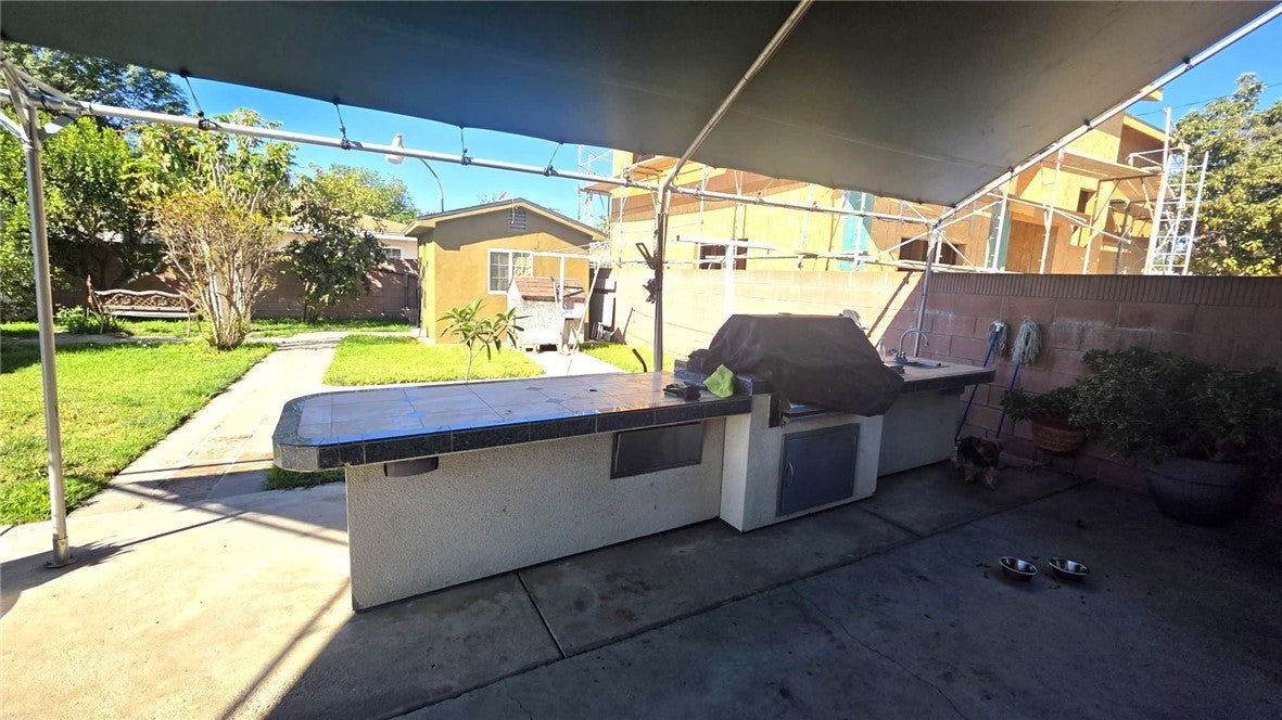 This thoughtfully refreshed home blends modern style with everyday practicality. It offers two generous bedrooms and one-and-a-half bathrooms, highlighted by tile flooring, refined molding, and fan lighting throughout the interior. The comfortable living space connects effortlessly to the open kitchen, which features shaker-style cabinetry, granite countertops, and stainless steel appliances, creating an ideal setting for cooking and entertaining. A bright and flexible garage conversion adds valuable living space and can be used as a playroom or an inviting area for gatherings. The permitted living space measures approximately 940 square feet. The roof was replaced around 6 years ago. The owner has the permits to build an ADU Outside, the property continues to impress with mature landscaping in both the front and backyard. Guava and papaya trees enhance the backyard’s character, while a charming gazebo provides a peaceful place to relax or entertain with a huge BBQ unit to bring your family to enjoy. A detached structure offers excellent storage or can function as a small office. The electric-gated rear driveway adds privacy, security, and convenient access. Situated in the desirable Lakewood community and located within the highly regarded ABC Unified School District, this home offers comfort, charm, and lasting appeal.