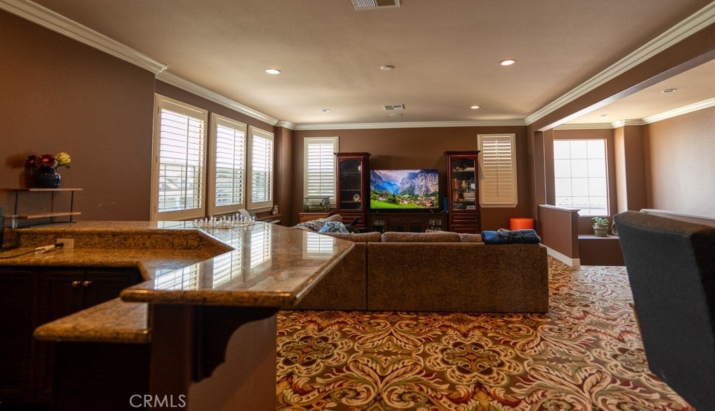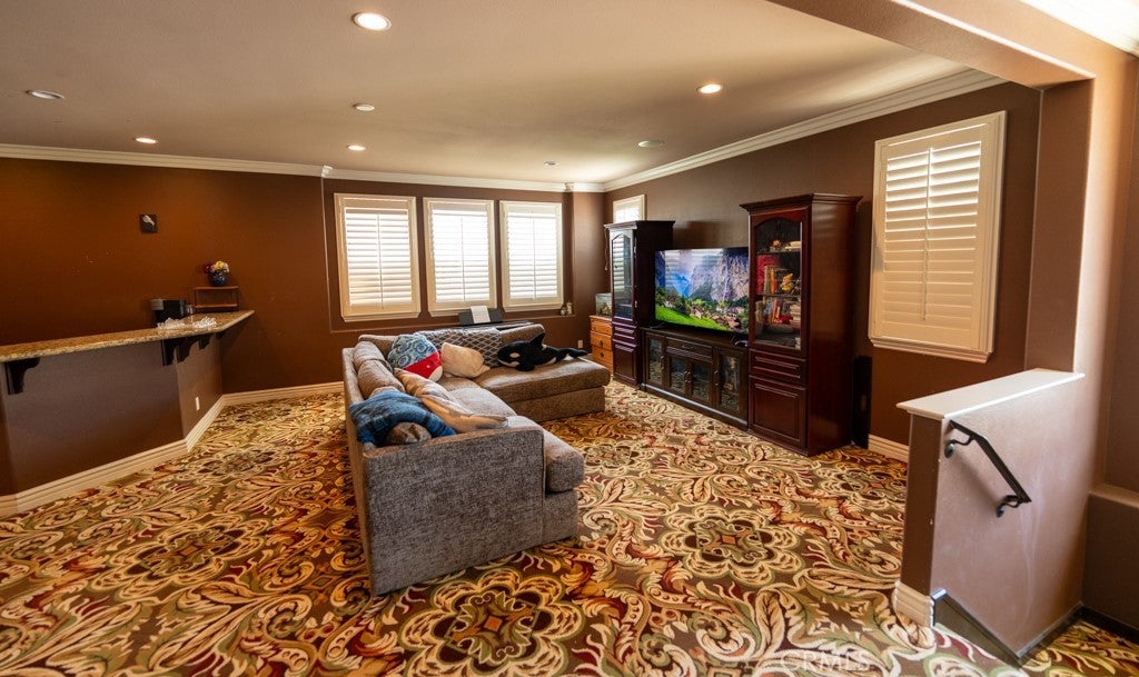 • Interior FeaturesBalcony, Breakfast Area, Crown Molding, Coffered Ceiling(s), Separate/Formal Dining Room, Eat-in Kitchen, Granite Counters, High Ceilings, Multiple Staircases, Recessed Lighting, Tile Counters, Two Story Ceilings, Wired for Sound, Attic, Bedroom on Main Level, Entrance Foyer, Multiple Primary Suites, Primary Suite, Walk-In Pantry, Walk-In Closet(s), Wine Cellar