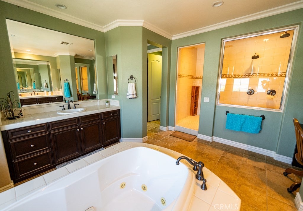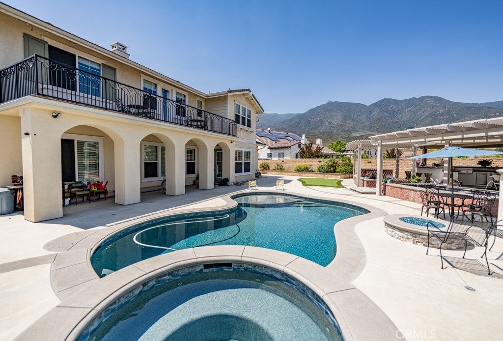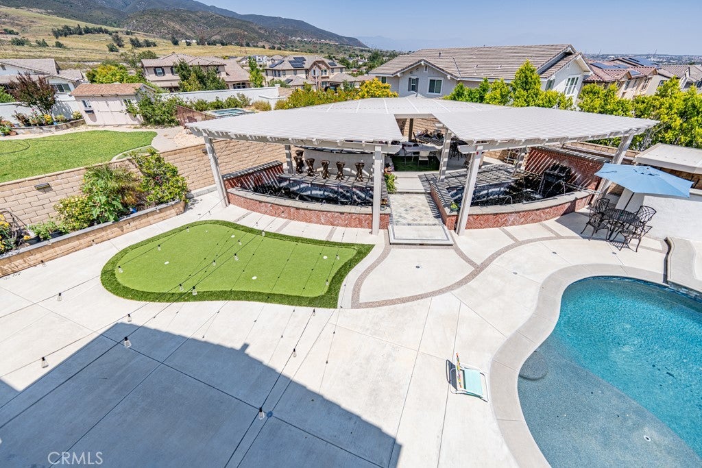 Welcome to Your Future Home in this Prestigious Community! This Stunning Residence offers an Expansive Features throughout the house. Approx. 10” high ceiling of Luxurious Living space, plus an attached Independent Casita/Guest Suite ideal as 6 bedrooms perfect for in-laws or extended guests. This Exceptional Property offers the Perfect Blend of Elegance, Comfort and Resort-style Living truly a Private Oasis in one of the most Sought-after Communities. Showcasing Extensive and Tasteful Upgrades throughout, this home features an oversized RV parking area and a grand well-designed layout . At the heart of the Home is a Chef's Dream Kitchen, the entertaining home includes 3 Decorative Fireplaces A downstairs Ensuite Bedroom offers convenience and privacy for guests. Throughout the home, you’ll find Premium Finishes. Upstairs Primary Suite is a True Retreat, featuring a cozy fireplace, and a massive walk-in closet complete with a center island. The Suite also includes a convenient laundry area with stackable W/D hookups and a built-in ironing board. Recently added at the Master Suite a Spacious Balcony with breathtaking view, also find three additional ensuite bedrooms and a large bonus/game room with a wet bar and a spectacular picture window. The Resort-style backyard is an entertainer’s paradise. Additional features include a 2 huge tranquil koi pond with a water fountain, an outdoor shower and powder bath, a custom artificial turf putting green, designed to replicate the look and feel of a golf course green while offering low-maintenance outdoor enjoyment, a new long concrete side with brand new iron gate with dual access for extra parking or RV use, ready wired for hot summer days with water mist. Don't miss this one time opportunity on this lower price on the market for a 6 bedrooms 6 bath and almost 5800 SQFT, recently added pool, spa, BBQ center, possible RV, Solar System plus more.