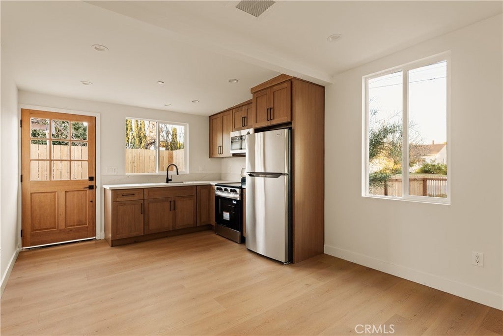 Incredible new 4-Unit premium income property in the high-demand North Hollywood rental market just minutes away from NoHo Arts District, shops, parks and transit. Unit mix consists of a duplex with (1) 3-bed/2-bath and (1) 1-bed/1-bath, and (2) 2-bed/1-bath ADUs in the building behind it. All units have separate electrical meters, entrances, addresses, dishwashers and in-unit laundry connections. Premium finishes, fully enclosed private yards, timeless contemporary design along with ample street parking enables buyer to command premium rents and longer term tenants. All new electrical, plumbing, HVAC and appliances minimize operating costs and offer peace of mind for years to come. Shared courtyard between buildings is spacious yet intimate and can be easily configured for more communal living or more separation and privacy. Owner occupants and house hackers will love the spacious 3-bed/2-bath unit with vaulted ceilings and primary ensuite. With proforma rents nearing $12k monthly/$143k annually, this 6% CAP property is turnkey ready to be an excellent addition to any investment portfolio. **All units are currently vacant but lease-up is in progress.**