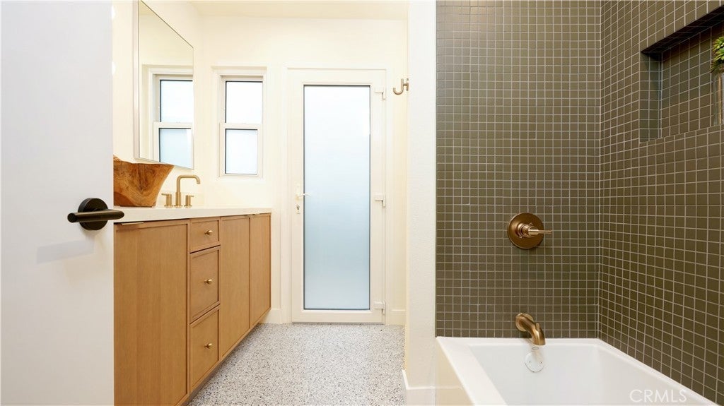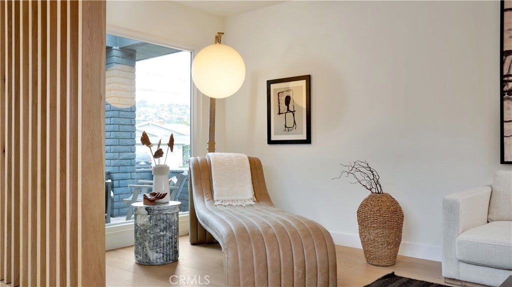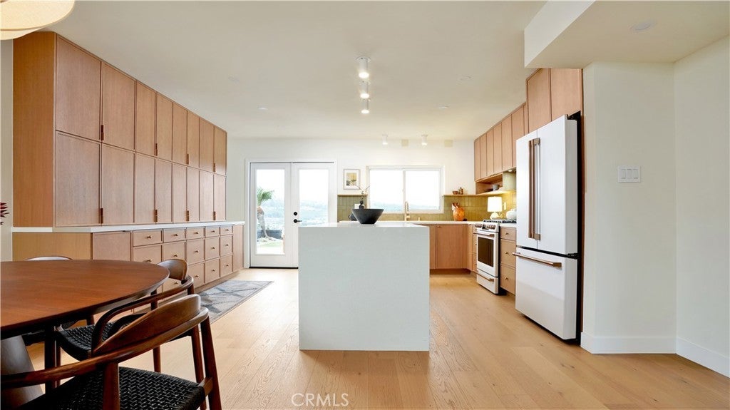 Views meet fully reimagined mid-century modern showpiece. Perched high, at the end of a quiet cul-de-sac, 33042 Palo Alto has 180° panoramic views stretch from the mountains to the Pacific Ocean. On an expansive 13,620sqft hillside, this 3-bedroom, 2-bath home offers approximately 1,939sqft of design-forward living, meticulously remodeled with designer finishes in every direction. The moment you arrive, the home’s curb appeal sets the tone: a chic, modern color palette, rich wood garage doors, and manicured landscaping create a warm, architectural welcome. Inside, the entry way is distinguished by rotating dark oak Wood Slat Room Dividers as sunlight pours through nearly floor-to-ceiling windows, framing the flat brick fireplace with terrazzo hearth and illuminating the home’s seamless flow. Recessed LED lighting showcase wide-plank white-oak engineered wood flooring that runs throughout the living spaces, delivering a cohesive aesthetic. Designed for effortless entertaining, the open-concept living area transitions beautifully into the remodeled kitchen. Featuring dark-oak inspired cabinetry, Copa high quality quartz countertops, and clé tile backsplash, a generous center island, and premium all new Café appliances. Stylishly, integrated hood wrapped modern dark oak with custom shelves keep the lines crisp and the focus where it belongs: on the architectural design. The heart of the home, a signature open-air atrium anchors the floorplan, bringing sky, light, and calm into the everyday. Down the hall, two bedrooms enjoy backyard exposure and views that reach for miles, conveniently located near a renovated hall bath with a dual-sink vanity, elegant lighting, and a tiled tub/shower surround. The primary suite is a retreat, offering a custom oversized walk-in closet and an editorial ensuite dressed in pebble-inspired, large-format tile, curb-less walk-in shower with rainfall shower head, dual sinks, and bespoke pendant lighting. A slider welcomes in natural light and connects the suite to the atrium’s serene ambiance. And then, la crème de la crème, the backyard, embrace the unobstructed, endless horizons: sweeping mountain-to-ocean backdrop that transforms morning coffee, golden hour, and evenings under the stars into a daily ritual. Completing the package the home has, all double pane windows & sliders, solar panels, new AC & smart thermostat, ring doorbell and a tankless water heater. This is Dana Point hillside living at its most unforgettable.