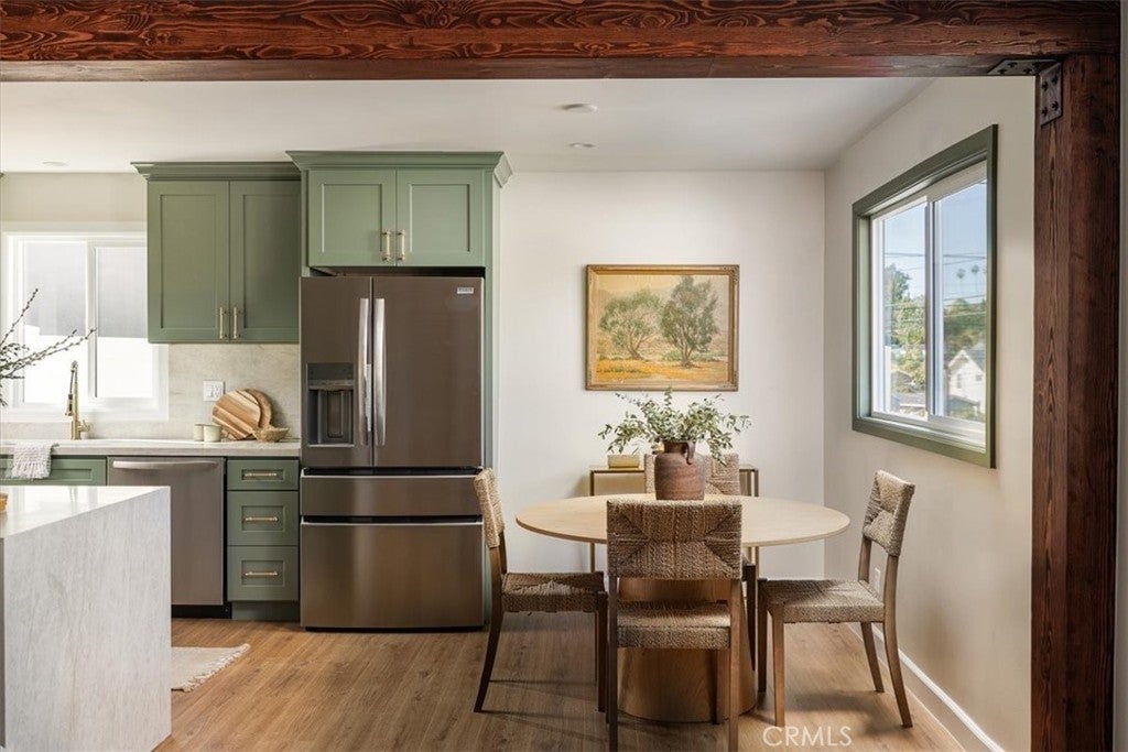 Perched above the street in one of Highland Park’s most sought-after pockets, 5118 Hub Street is a beautifully reimagined residence that blends modern design, thoughtful functionality, and timeless character. The home opens to a light-filled, open-concept layout where living, dining, and kitchen spaces flow effortlessly together — anchored by a striking exposed wood beam that adds warmth and architectural presence. At the heart of the home, the chef’s kitchen features an oversized quartz island, American shaker cabinetry, premium finishes, and seamless sightlines that make it ideal for both everyday living and entertaining. Convenient laundry hookups off the kitchen add ease without sacrificing style. Designed with flexibility in mind, the home offers two expansive primary suites. The main-level primary retreat boasts an oversized bedroom, two walk-in closets, and a spa-inspired en-suite bathroom — a rare and coveted layout in the area. Upstairs, a second primary bedroom with its own en-suite bath provides the perfect setup for guests, multi-generational living, or a private home office suite. An additional upstairs bedroom is also accompanied by a separate full bathroom with a bathtub, creating excellent separation and functionality for family or guests. Outdoor living is just as compelling. The oversized rear patio creates a true extension of the home — perfect for dining, lounging, and entertaining year-round. Beyond the patio, the backyard features mature fruit trees and offers exceptional ADU potential, making it ideal for future expansion, rental income, or a private studio space. Additional highlights include generous bedrooms, beautifully updated bathrooms, abundant natural light, and a layout that maximizes both comfort and versatility. All of this is set moments from York Boulevard, Figueroa Street, and some of Northeast LA’s best dining, coffee, boutiques, and nightlife, while still offering privacy and a neighborhood feel. With easy access to DTLA, Pasadena, and major freeways, this location delivers the perfect balance of convenience and community. 5118 Hub Street is more than a remodel — it’s a thoughtfully curated home designed for the way people live today.