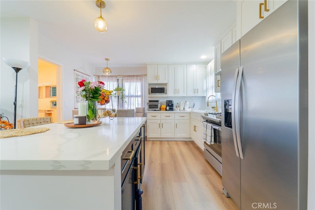 Beautifully upgraded and move-in ready 3-bedroom, 2-bath home with a 2-car garage and a spacious backyard perfect for entertaining. This property has been thoughtfully renovated with major improvements that offer both style and peace of mind. Enjoy a brand-new roof and a complete electrical rewire of the home, including a new electrical panel, new GFI outlets in the kitchen, bathrooms, and sunroom, plus hard-wired smoke and carbon monoxide alarms. The fully remodeled kitchen features elegant quartz countertops, a modern center island, and a sleek contemporary design ideal for everyday living and hosting guests. Both bathrooms have been fully renovated with stylish, modern finishes. Additional upgrades include recessed lighting, new ceiling fans in every room, fresh interior paint throughout, and an updated laundry room with new tile, new paint, new water hookups for the washer, and a brand-new water heater. Step outside to a large backyard designed for gatherings and outdoor enjoyment, along with a versatile sunroom perfect for relaxing on warm summer nights. Conveniently located near shopping, parks, gyms, restaurants, fast food, and public transportation, with easy access to the 10 and 210 freeways — making commuting simple and convenient. A true turnkey home offering comfort, upgrades, and location all in one.