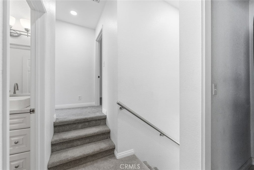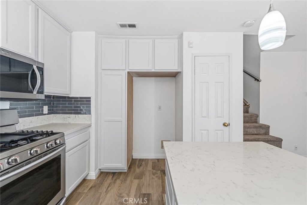 Welcome to this beautifully upgraded end-unit condo featuring 3 spacious bedrooms, 2 full bathrooms, and a 2-car attached garage. This cozy home is move-in ready and thoughtfully enhanced with modern conveniences. Enjoy cooking in the remodeled kitchen with white shaker cabinets, quartz countertops, reverse osmosis water filtration, and Samsung stainless-steel appliances. The open layout flows into a warm living room with a fireplace and sliding glass doors that lead to a wrap-around patio—perfect for morning coffee or outdoor dining. Upstairs, you’ll find all three bedrooms and two remodeled bathrooms, including a primary suite with a glass-enclosed shower, large jacuzzi tub, and private balcony. A stackable washer and dryer are conveniently located in the upstairs laundry closet. Recent upgrades include a new HVAC system, new water heater, EV charger, smart Wi-Fi door lock, Ring doorbell, outdoor floodlight camera, security system, and Wi-Fi garage door opener with battery backup. Guest parking is located directly across from the unit. Located in the heart of Cypress, this home offers access to top-rated schools including Oxford Academy, nearby parks, shopping, and dining. A perfect blend of comfort, convenience, and value.