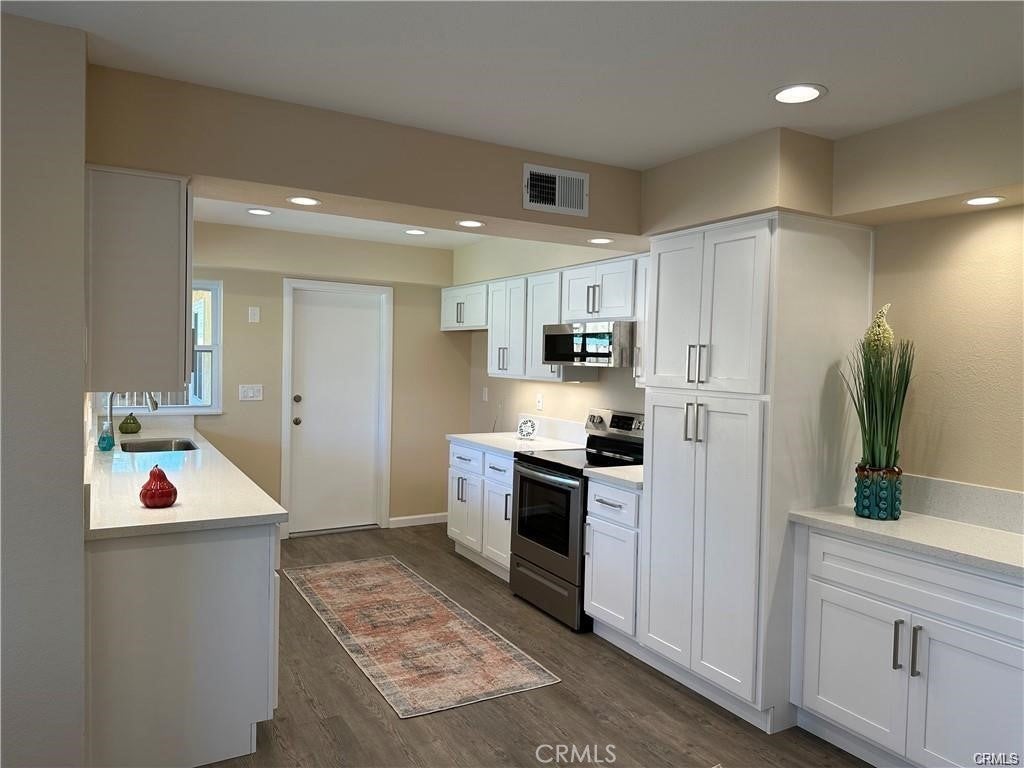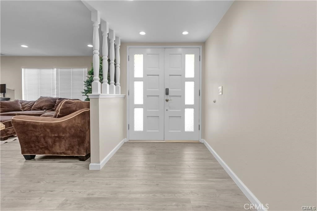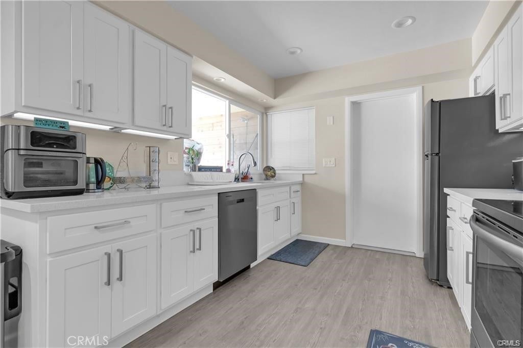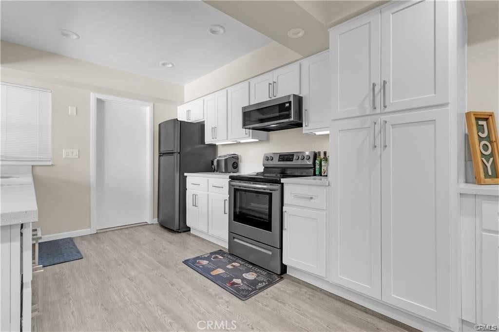 HOUSE + ADU. The initial home is a 3-bedroom, 2-bathroom. To the left, entering the hallway to the master bedroom with a new master bathroom, his and hers closet. The other two bedrooms face the lovely backyard and share the hallway's new bathroom. The kitchen is a total delight with White cabinets, quartz countertops, and stainless-steel appliances. From the kitchen, you go into the patio and to the backyard through the French doors. Also, from the kitchen, there is a direct entry to the new two-bedroom unit, with two bathrooms, a storage closet, and a laundry area. The garage was transformed into a 2-bedroom, 2-bathroom unit to fit the needs of the extended family. Each of these two bedrooms has its own AC unit for convenience and energy savings. The unit has a private entrance from the patio, LOW maintenance landscaped backyard with automated sprinklers and beautiful night lighting. You have amazing views of the San Jacinto Mountains right out of your kitchen window (No HOA, No Mello-Roos taxes, Low property taxes), Lot Size is 15,246, enough space for RV Parking. Appliances Included: Stove, Dishwasher, Microwave & Fridge.