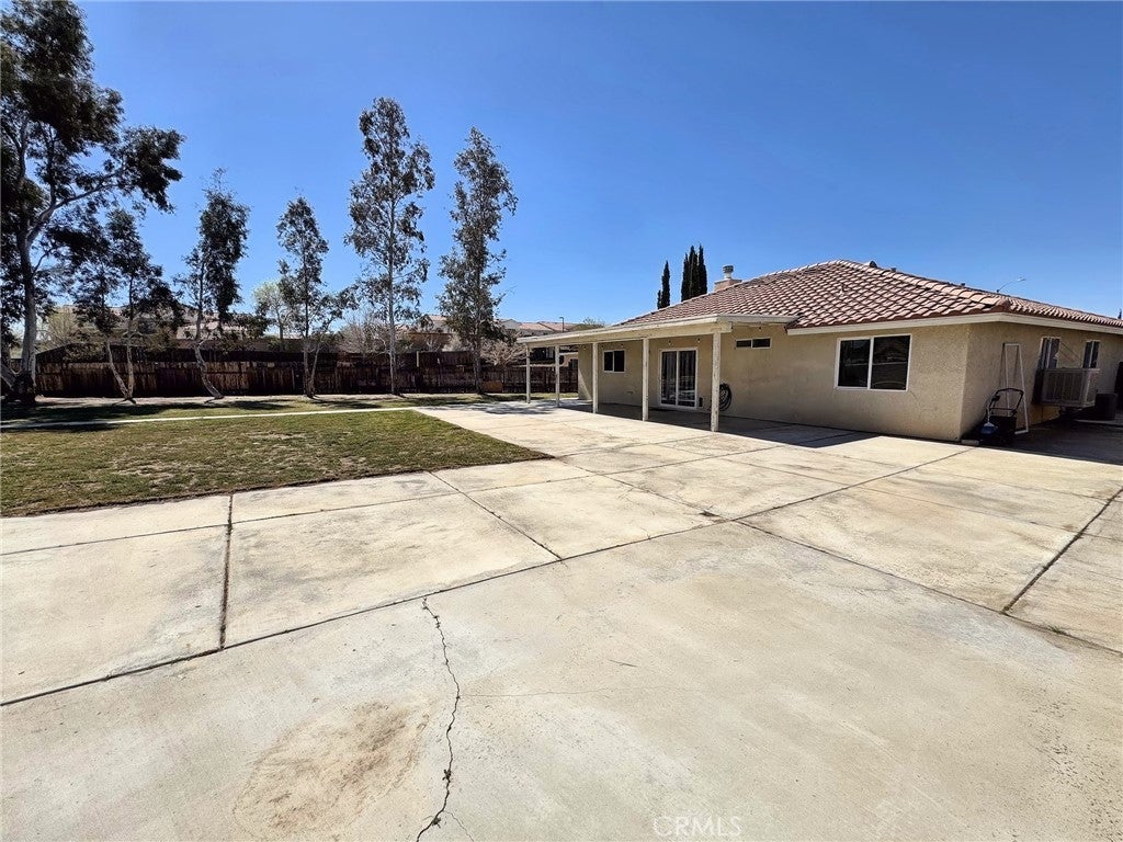 Welcome to this inviting 3-bedroom, 2-bathroom home offering approximately 1,544 square feet of comfortable living space, located on a quiet cul-de-sac with limited neighboring homes. The main living area features high ceilings that create a bright and open feel, while the thoughtful layout provides excellent separation and privacy. The spacious primary suite on the south side of the home, features a generously sized bedroom, dual sinks, a walk-in shower, and a walk-in closet. On the opposite side of the home, two additional good sized carpeted bedrooms and a comfortable den/TV room provide flexible space for family, guests, or maybe a home office. The kitchen and dining area are towards the back of the home, creating a natural gathering space for everyday living and entertaining. The view from the kitchen sink overlooks the expansive backyard, and sliding glass doors lead directly to the covered patio with a concrete slab, perfect for outdoor dining, relaxing evenings, or weekend barbecues! Situated on an oversized 17,200 square foot lot, the backyard expands and offers plenty of space for outdoor activities and future possibilities. The east-facing backyard provides pleasant morning sunlight and cooler afternoons, creating a comfortable outdoor setting throughout the day. Other features include easy care tile flooring through much of the home, a separate laundry room, and an attached two-car garage with direct access. This home also features a durable tile roof, central heating and air conditioning for year-round comfort, and an evaporative cooler in the den area for supplemental cooling during the warmer dryer months. Conveniently located near Hesperia Road with easy access to shopping, dining, and everyday amenities, including grocery stores just minutes away. This home offers space, comfort and opportunity, in a desirable family cul-de-sac setting. Call and schedule to view today!