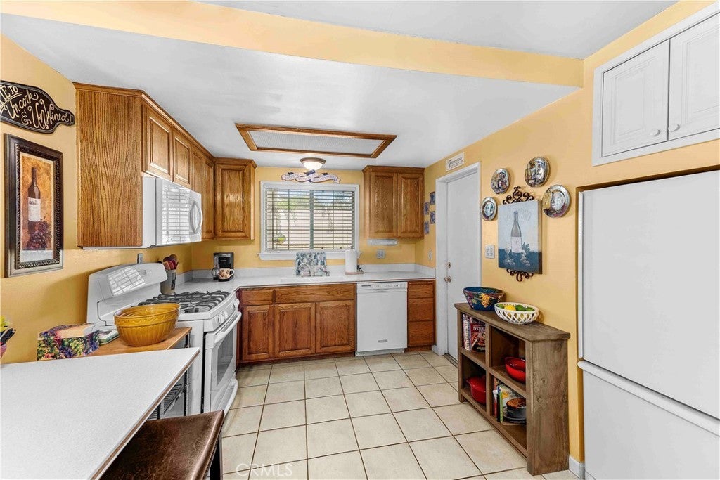 Nestled in one of the most sought-after and quiet interior tracts of Cypress, California, this stunning single-story Brentwood at 5101 Myra Avenue is more than just a house—it is the quintessential Southern California home. Combining mid-century charm with thoughtful modern updates, this property offers an unparalleled lifestyle for those seeking comfort, community, and convenience. From the moment you pull up to the oversized driveway, the pride of ownership is evident. The home features a well-maintained front lawn framed by classic brick borders and updated stucco, offering a clean and inviting aesthetic. With a spacious two-car attached garage and ample street parking, there is plenty of room for guests and family alike. Step through the formal entry into a light-filled floor plan spanning approximately 1,410 square feet. The heart of the home is the expansive living and family room area, which boasts soaring vaulted ceilings and a cozy brick fireplace—perfect for cool California evenings or festive holiday gatherings. Situated on a generous 6,000 square foot lot, the backyard is a true extension of the living space. Step through the sliding glass doors to find a private retreat featuring an open patio with integrated drains—ideal for summer BBQs, outdoor dining, or simply enjoying the Cypress sunshine. Whether you envision a lush garden or a play area, this backyard offers the space and privacy to make it your own. WELCOME HOME...