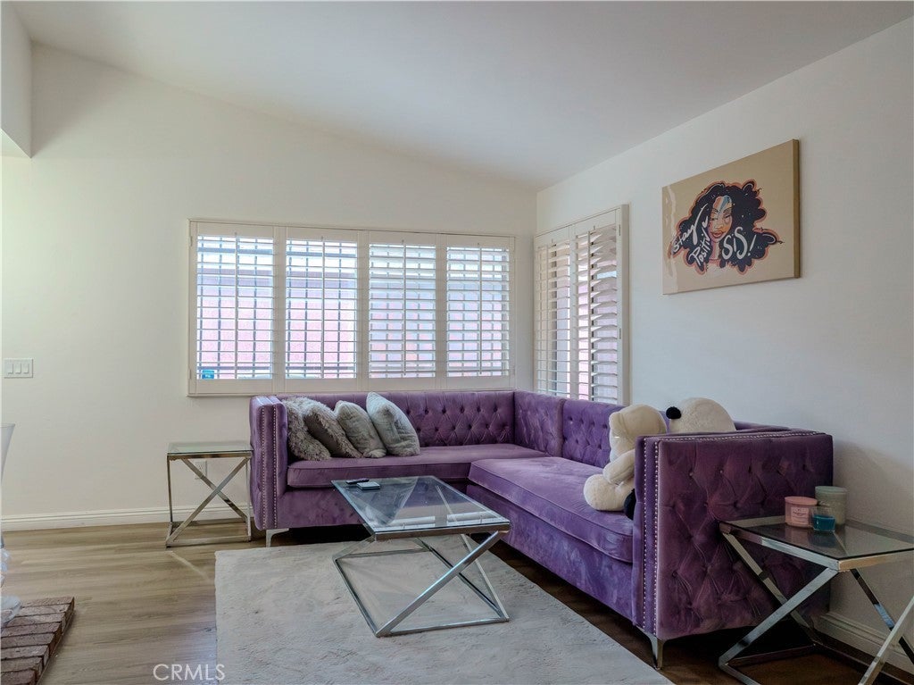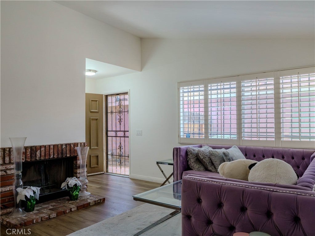 Charming single-story 2 bedroom, 2 bathroom home offering a bright and functional layout. The inviting living room features vaulted ceilings, a cozy fireplace, and plantation shutters that allow for abundant natural light. The kitchen includes stainless steel appliances, modern backsplash, and ample cabinetry, opening to the dining area and breakfast nook. Both bedrooms are spacious, including a primary suite with its own private bathroom and access to the backyard. Enjoy outdoor living under the covered patio and a generous backyard with room to relax, entertain, or customize. The front yard features low-maintenance artificial turf and drought-tolerant landscaping for great curb appeal and water savings. An oversized storage shed provides additional storage space. Ideal for first-time buyers, downsizers, or investors.